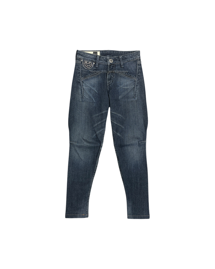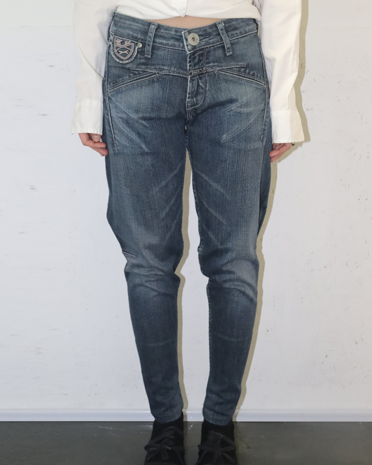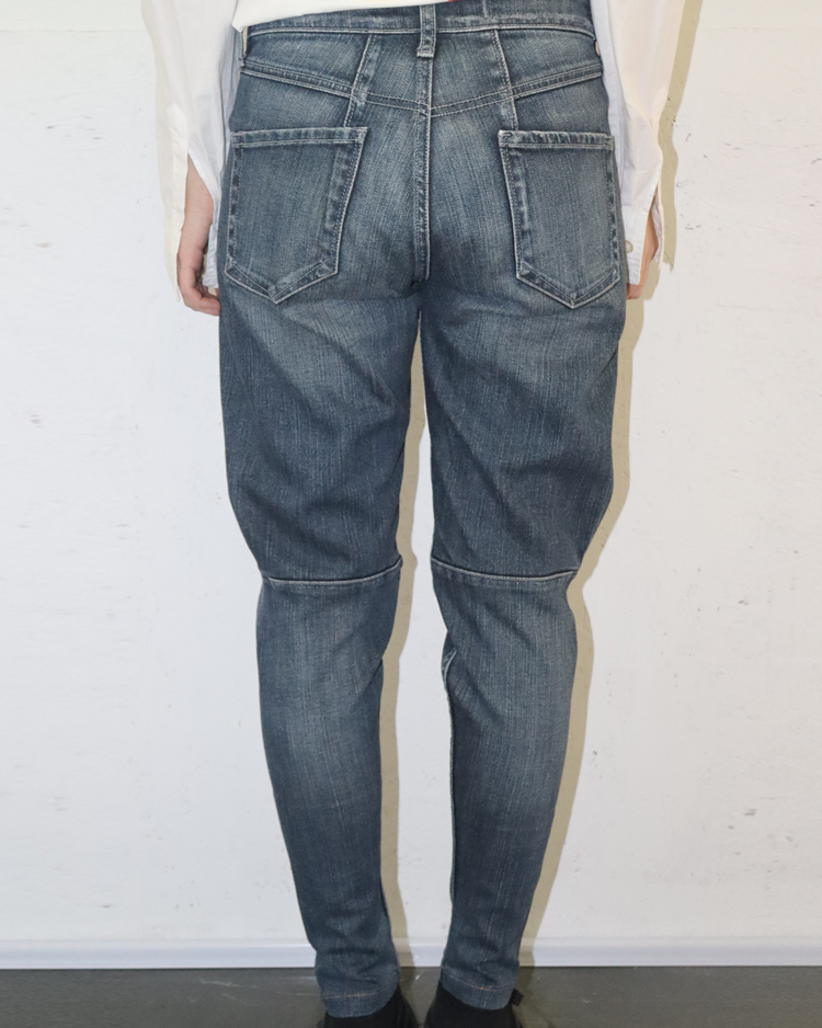 유러피안 캐주얼 브랜드 마리떼 프랑소와 저버의 90년대 팬츠입니다. 사선 절개와 구조적 포켓 라인이 특징인 슬림 팬츠로, 워싱과 텍스처 변주를 통해 브랜드 특유의 아방가르드한 실루엣을. 완성했습니다.