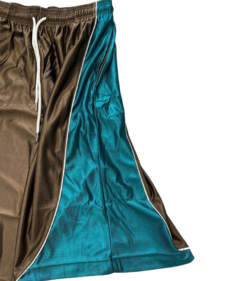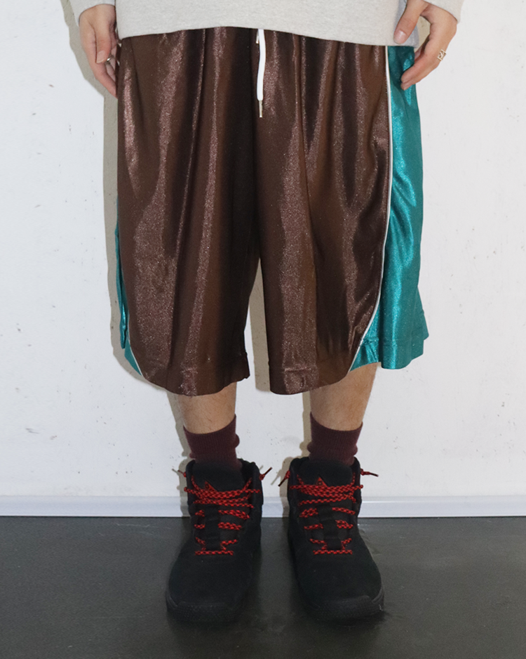 90–00년대 스트리트·스포츠 문화를 현대적으로 재해석하며, 과장된 실루엣과 유머러스한 컬러 감각으로 하입한 브랜드 Vincent Boily-Chatelain(VBC)의 아이템입니다. 시그니처 제품 중 하나인 배기 핏 베스킷볼 쇼츠로, 브랜드가 지향하는 실험적 스트리트 무드를 잘 보여주며, 브라운과 틸 컬러의 조화가 매력적입니다. 은은한 광택의 폴리에스터가 레트로 스포츠웨어의 질감을 재현하며, 여유롭게 떨어지는 볼륨 실루엣과 사이드 커브 패널이 독특한 실루엣을 연출합니다.