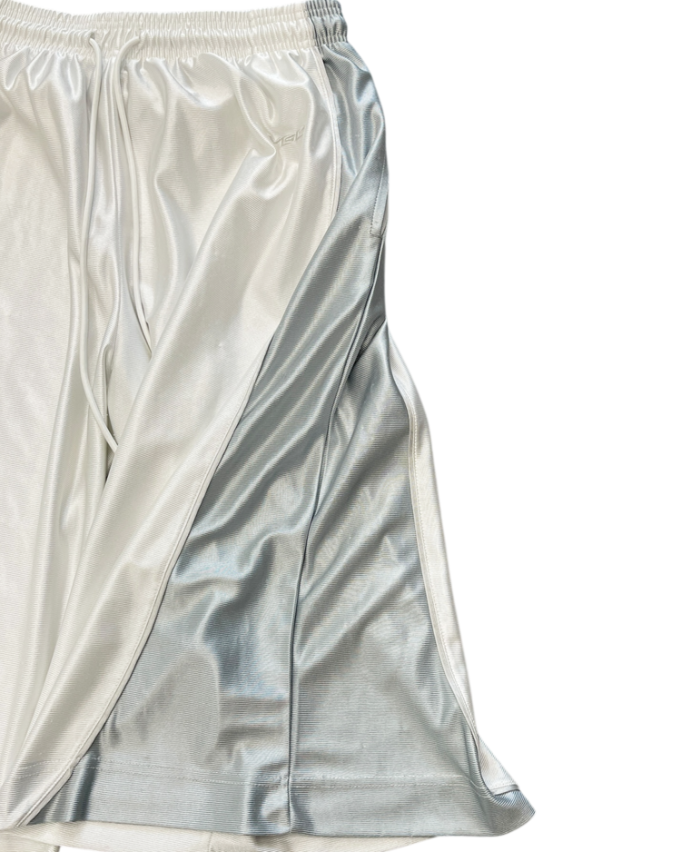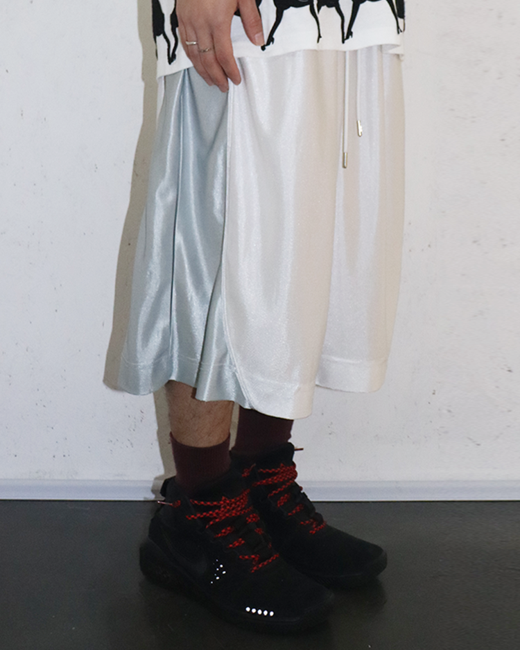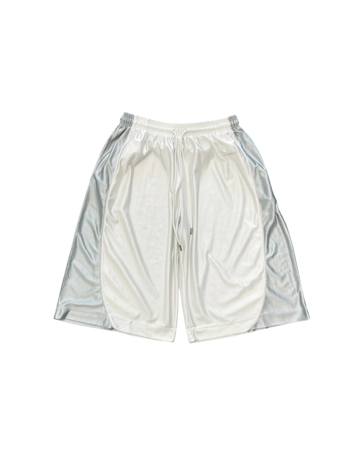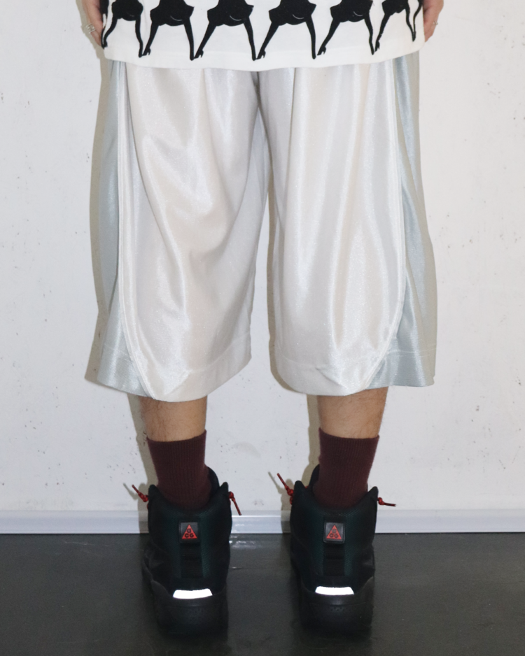 90–00년대 스트리트·스포츠 문화를 현대적으로 재해석하며, 과장된 실루엣과 유머러스한 컬러 감각으로 하입한 브랜드 Vincent Boily-Chatelain(VBC)의 아이템입니다. 시그니처 제품 중 하나인 배기 핏 베스킷볼 쇼츠로, 브랜드가 지향하는 실험적 스트리트 무드를 잘 보여주며, 화이트와 실버 컬러의 조화가 매력적입니다. 은은한 광택의 폴리에스터가 레트로 스포츠웨어의 질감을 재현하며, 여유롭게 떨어지는 볼륨 실루엣과 사이드 커브 패널이 독특한 실루엣을 연출합니다.