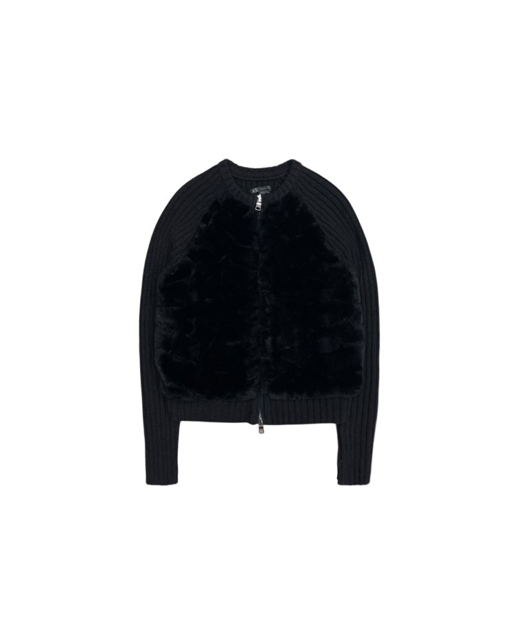 조르지오 아르마니의 감각을 보다 젊고 실용적인 무드로 확장한 라인으로, 미니멀한 실루엣과 도시적인 스타일링이 돋보이는 아르마니 익스체인지의 제품입니다. 바디 중앙에 퍼 패널을 적용해 포근한 텍스처 대비를 만든 니트 집업으로, 슬림한 리브 조직과 투웨이 지퍼 디테일이 정돈된 실루엣을 완성했습니다.