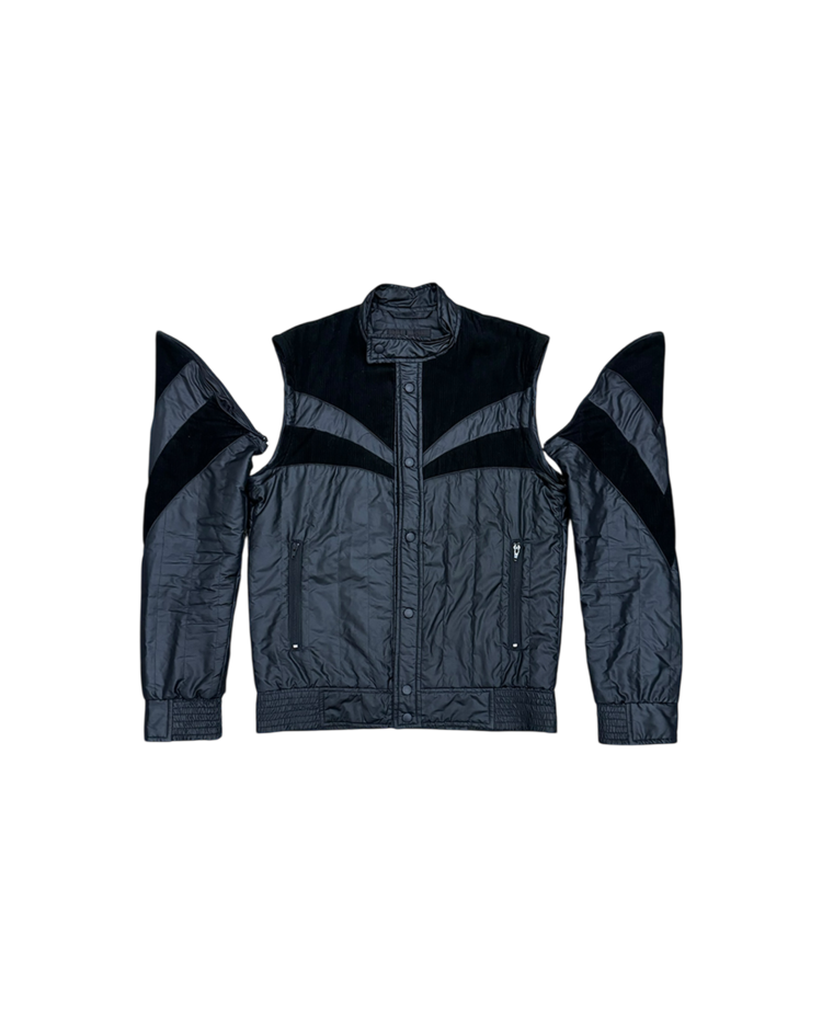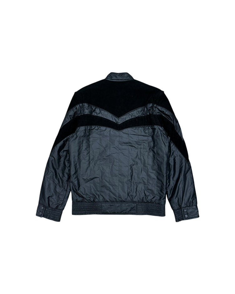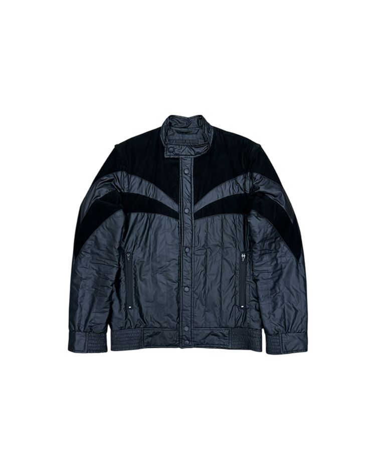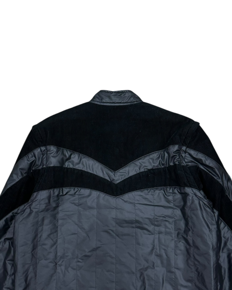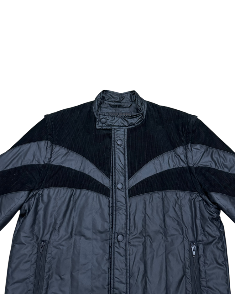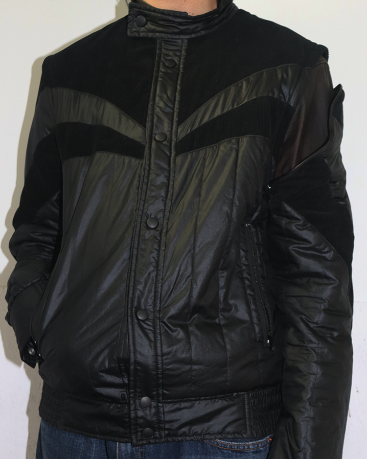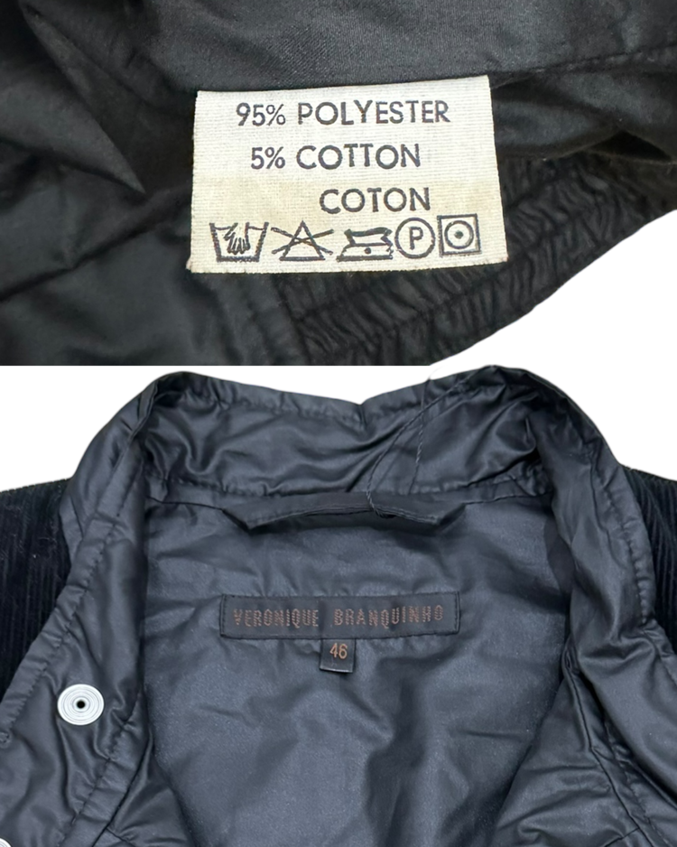 간결한 실루엣과 우아한 디테일로 브랜드를 전개했던 베로니크 브란퀸호의 제품입니다. 코듀로이 패널을 곡선으로 배치해 구조감을 만들었으며, 스탠드 카라와 스냅 버튼, 그리고 분리 가능한 슬리브 디테일이 조합되어 블루종과 베스트 두 가지 형태로 연출이 가능합니다. 스포츠 웨어적 요소와 럭셔리 테일러링의 균형을 통해, 브랜드 특유의 무드를 잘 살린 아이템입니다.