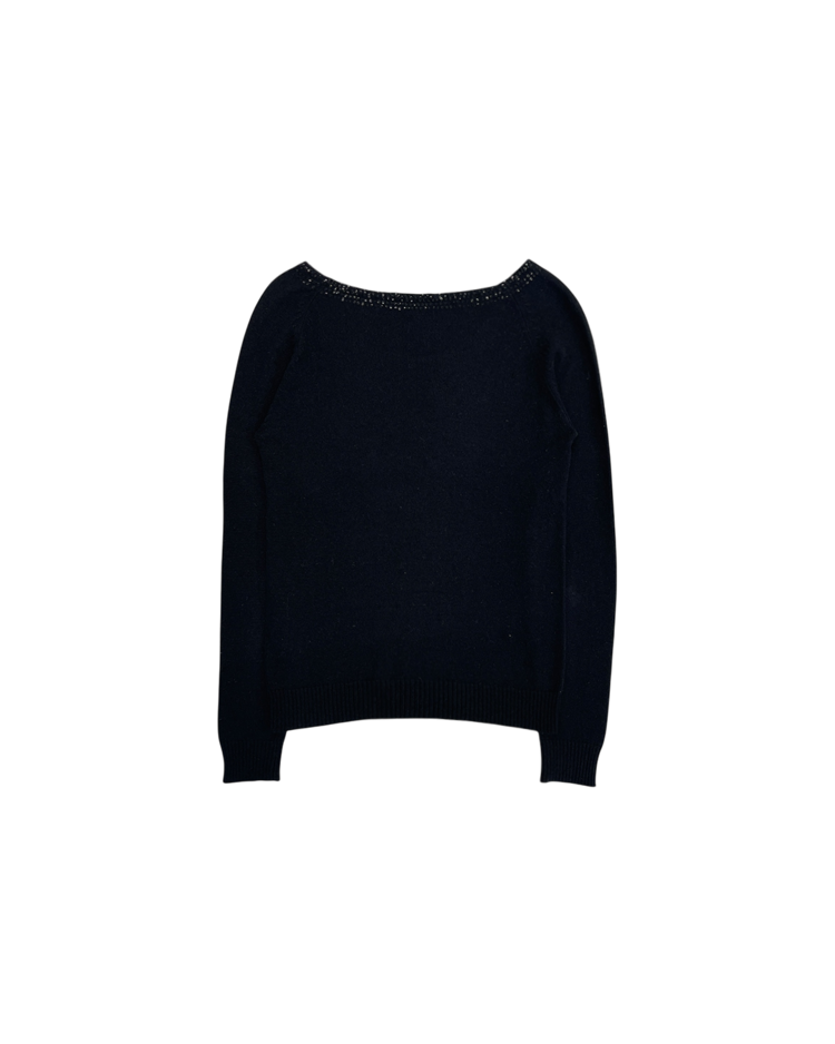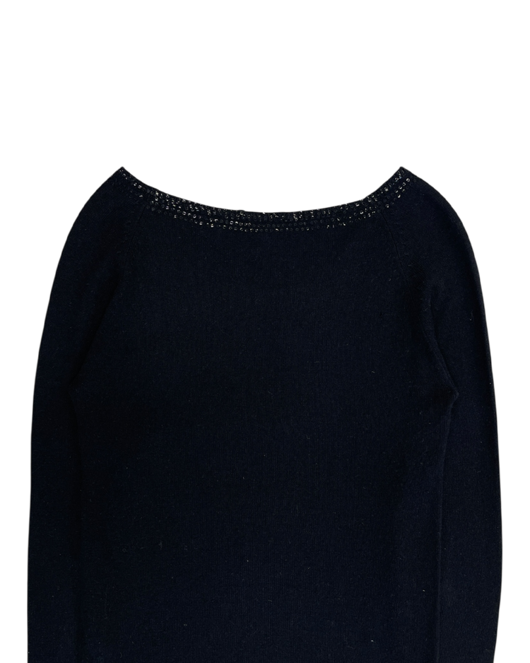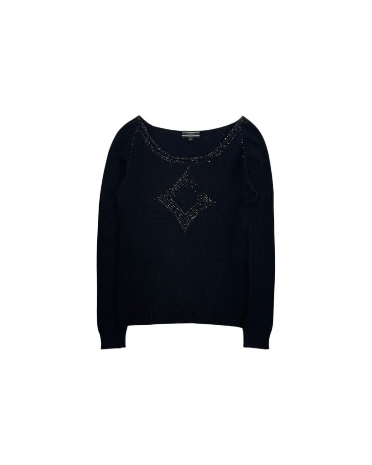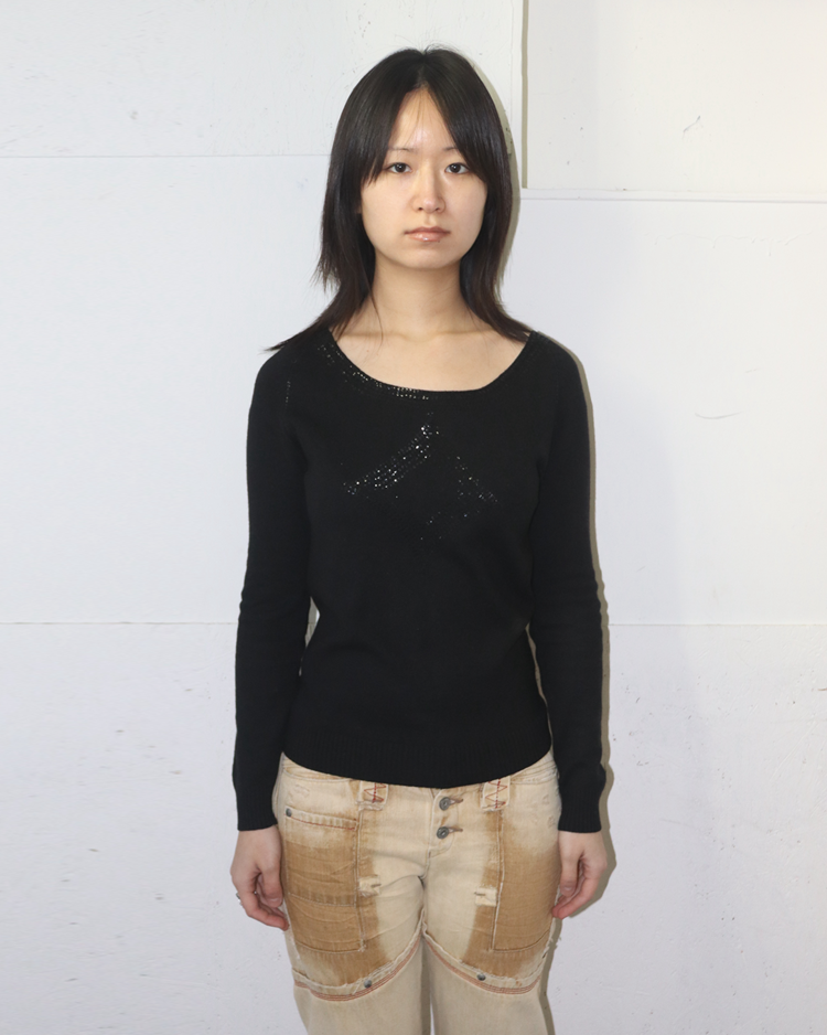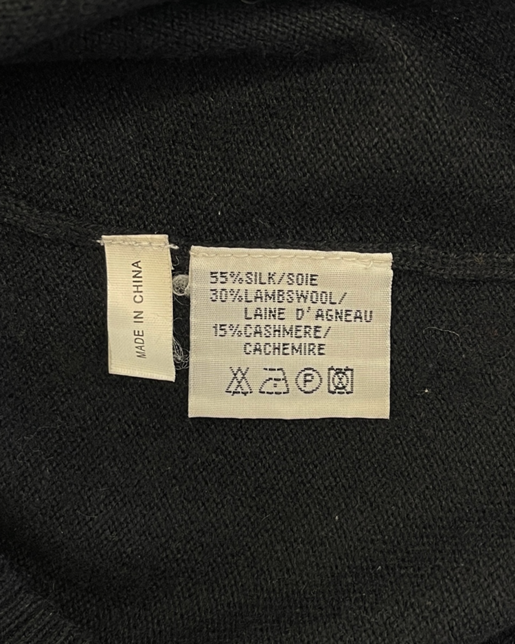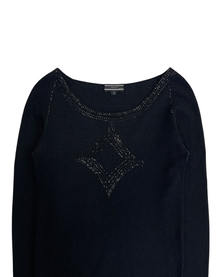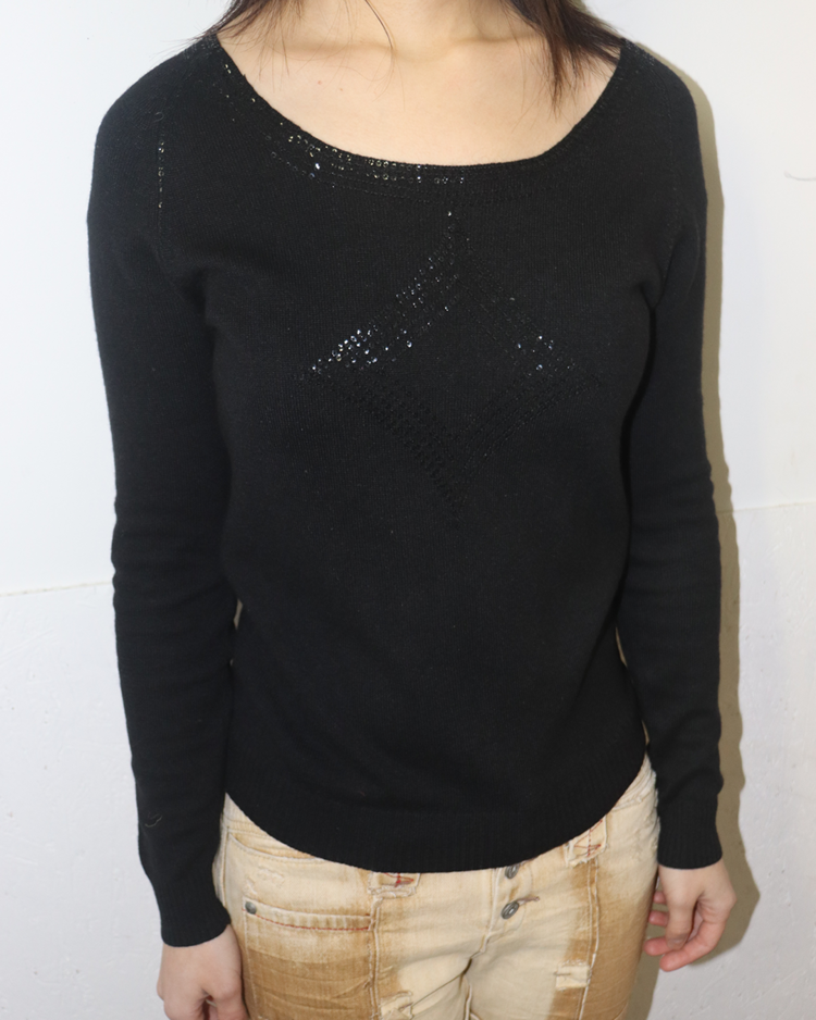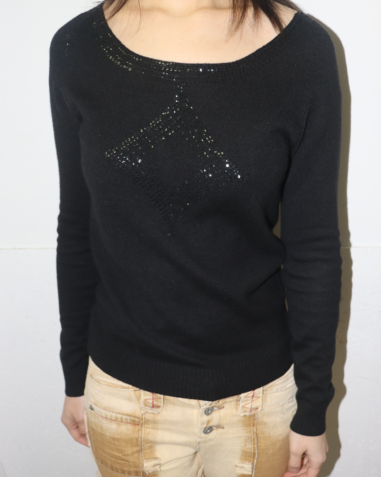 런던에서 설립된 고급 패션 브랜드 조셉의 2010년대 초반 제품입니다. 실크와 램스울 혼방 소재로 제작되어 부드러운 터치감과 우수한 보온성을 갖추었으며, 암홀까지 이어지는 스팽글 디테일이 은은한 포인트를 더해주는 매력적인 아이템입니다.