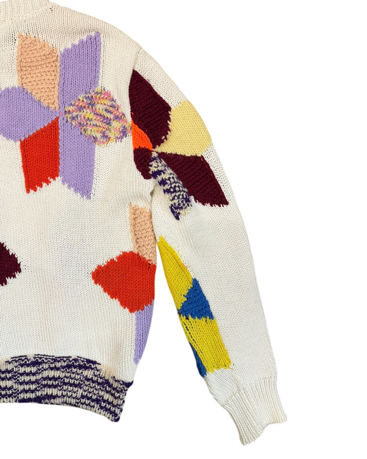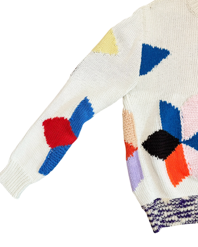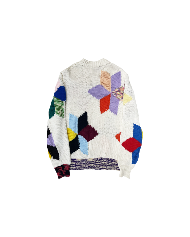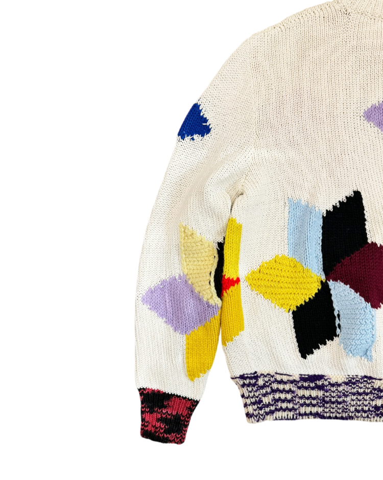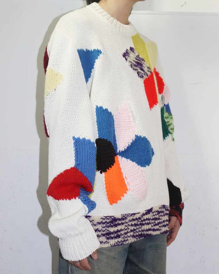 라프 시몬스가 유럽적 시각에서 미국 사회의 명암과 예술을 결합해 시대적 실험의 정점을 선보였던, 캘빈 클라인 205w39nyc의 제품입니다. 2018 리조트에 등장한 스웨터로, 다양한 컬러 블록을 손뜨개처럼 배열하여, 규칙 없는 패턴과 질감 대비가 화면처럼 펼쳐집니다. 당시 205W39NYC의 재해석을 가장 직관적으로 보여주는 아이템입니다.