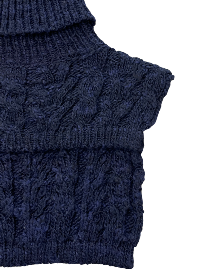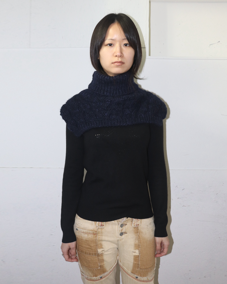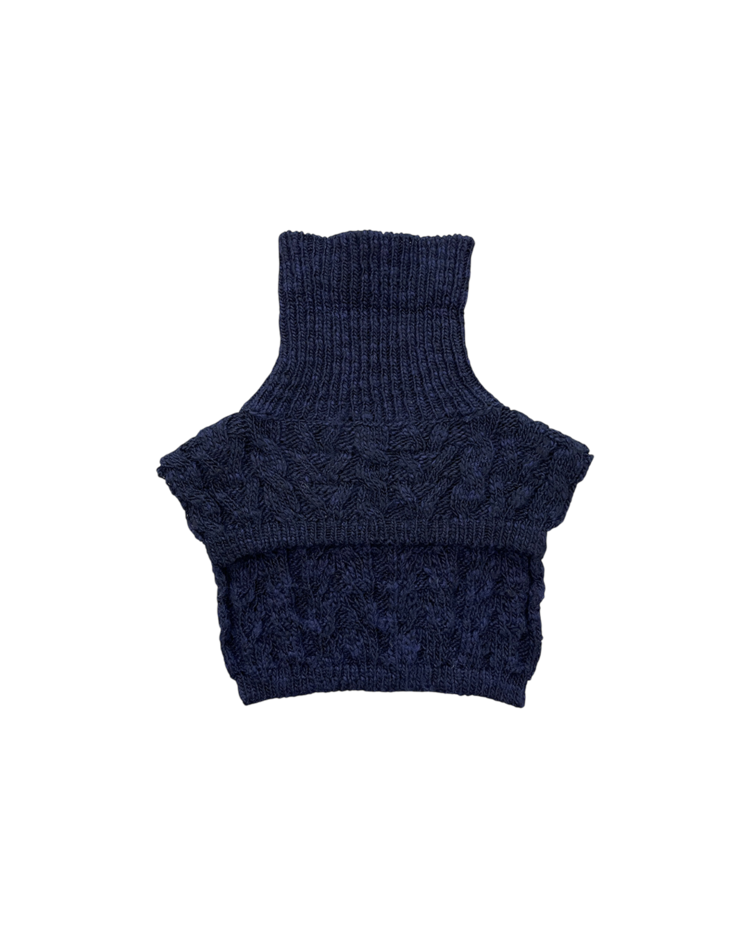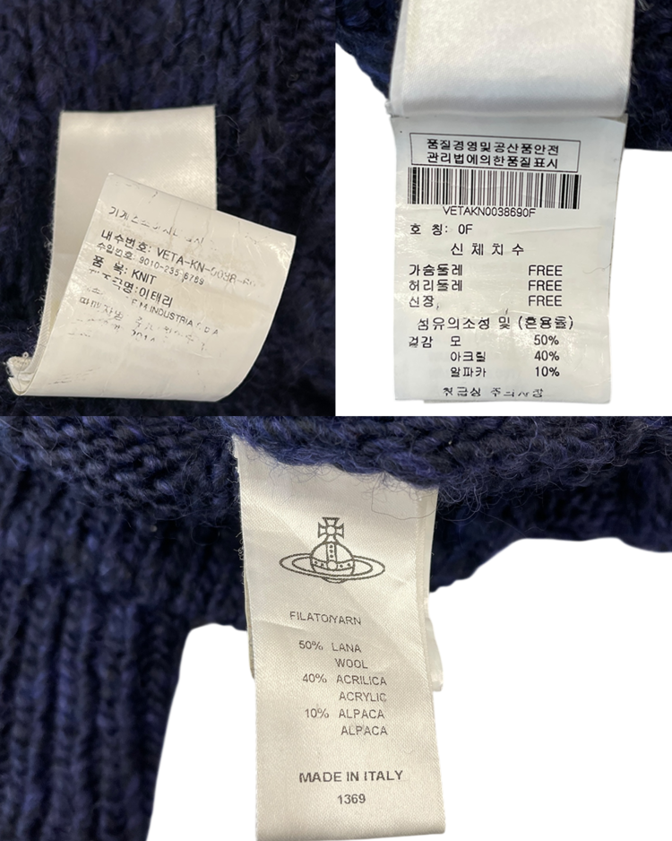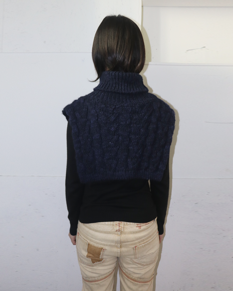 비비안 웨스트우드의 펑크·영국식 테일러링 코드를 더 캐주얼하고 웨어러블한 무드로 풀어낸 라인인 앵글로매니아의 제품입니다. 굵은 케이블 조직과 볼륨감 있는 터틀 형태로 존재감을 만든 넥 워머로, 레이어드에 용이합니다.