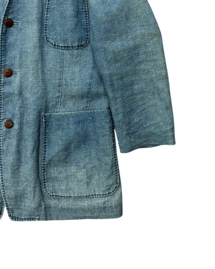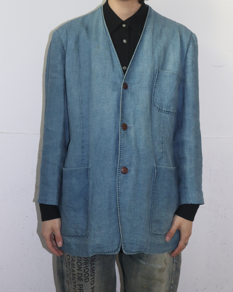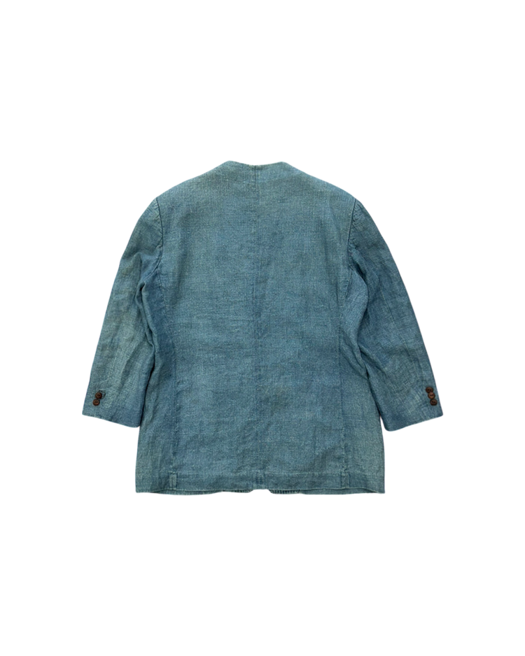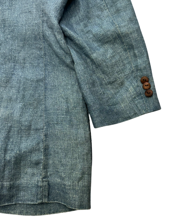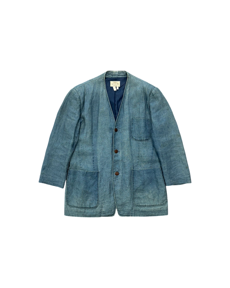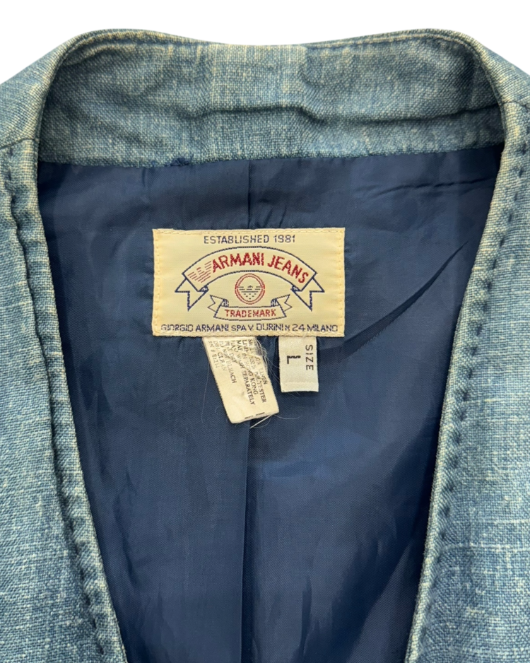 조르지오 아르마니의 캐주얼 라인으로, 테일러링의 균형과 실용적인 소재를 통해 일상 속에서도 아르마니 특유의 절제된 미감을 유지하는 아르마니 진의 제품입니다. 90년대 무드가 느껴지는 린넨 자켓으로, 미니멀한 V넥 라인과 부드럽게 떨어지는 실루엣이 단정하면서도 여유 있는 인상을 줍니다. 전체적으로 사용감이 느껴지며, 미세한 오염들이 존재합니다.