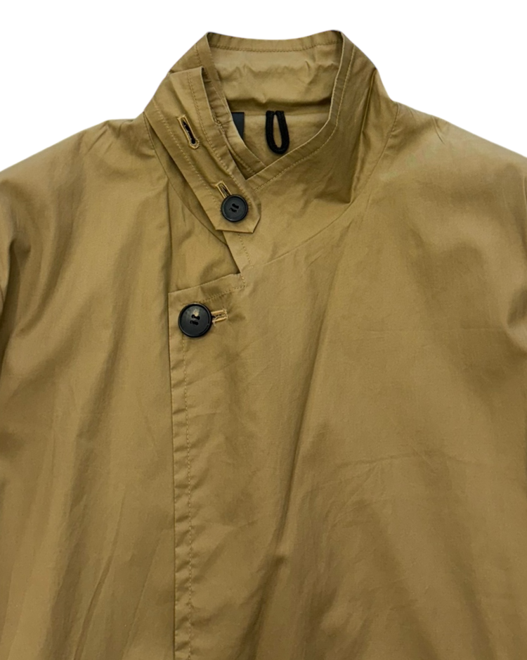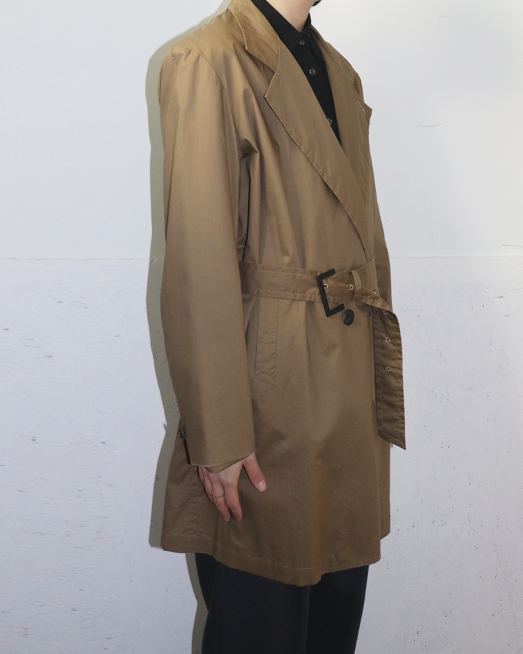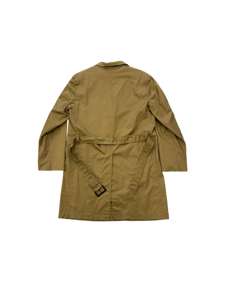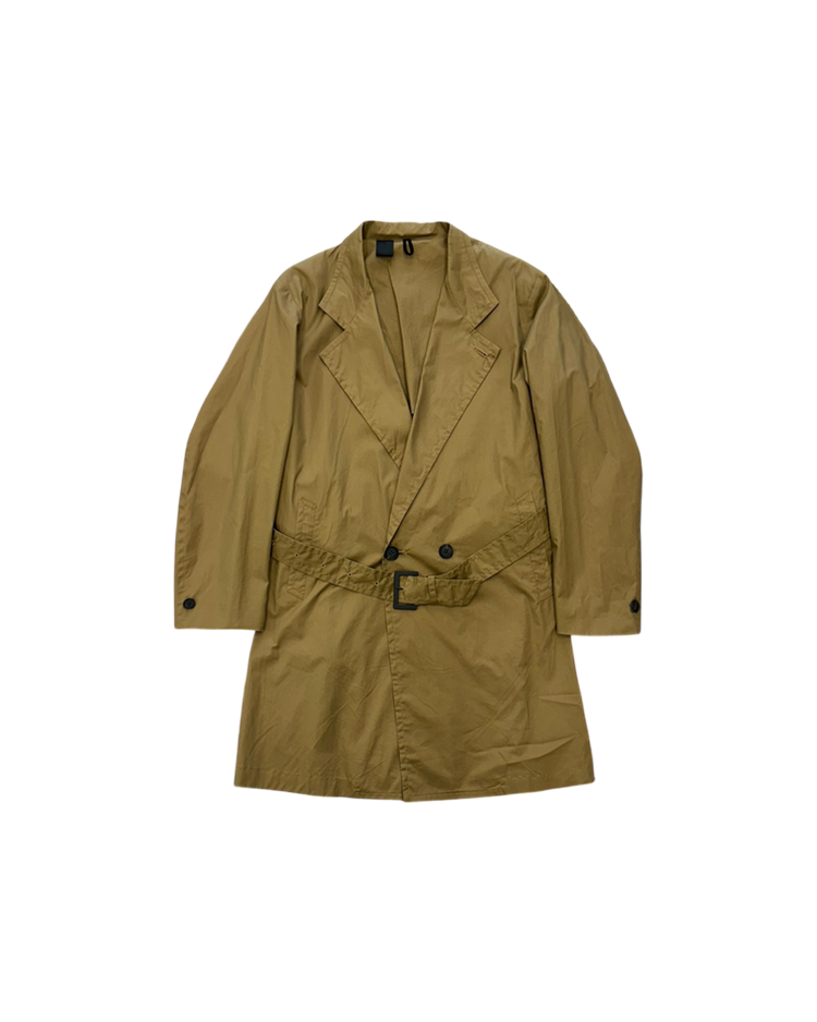 클래식한 밀리터리 스타일과 아메리칸 빈티지 스포츠웨어에 기반을 두고 브랜드를 전개하는 엔 훌리우드의 제품입니다. 클래식 트렌치 코트를 기반으로 버튼 수를 최소화하고 벨트와 카라 구조를 정제해 간결한 인상을 강조한 디자인으로, 가볍고 드라이한 코튼 원단이 자연스러운 주름과 함께 힘 빠진 실루엣을 연출합니다.