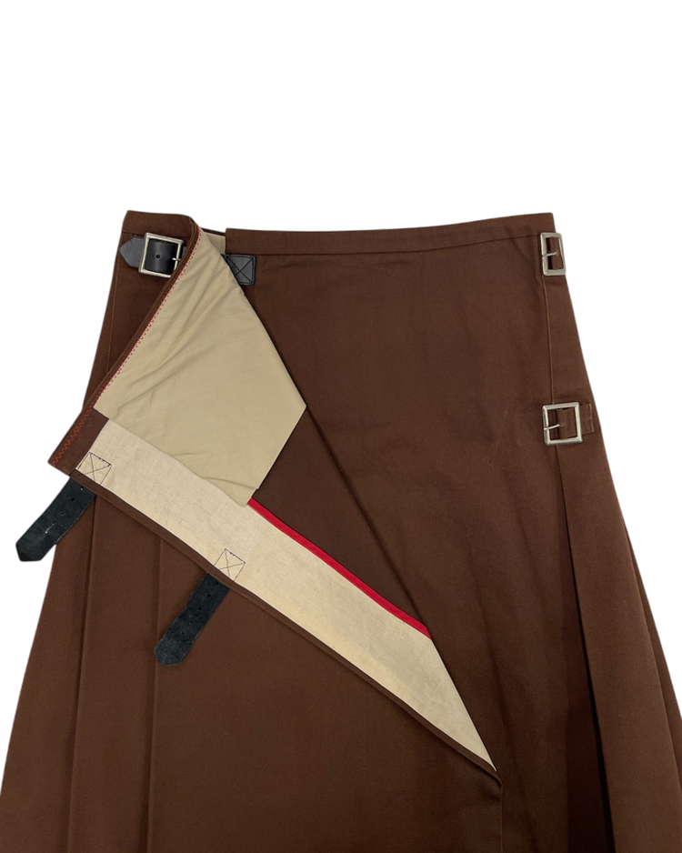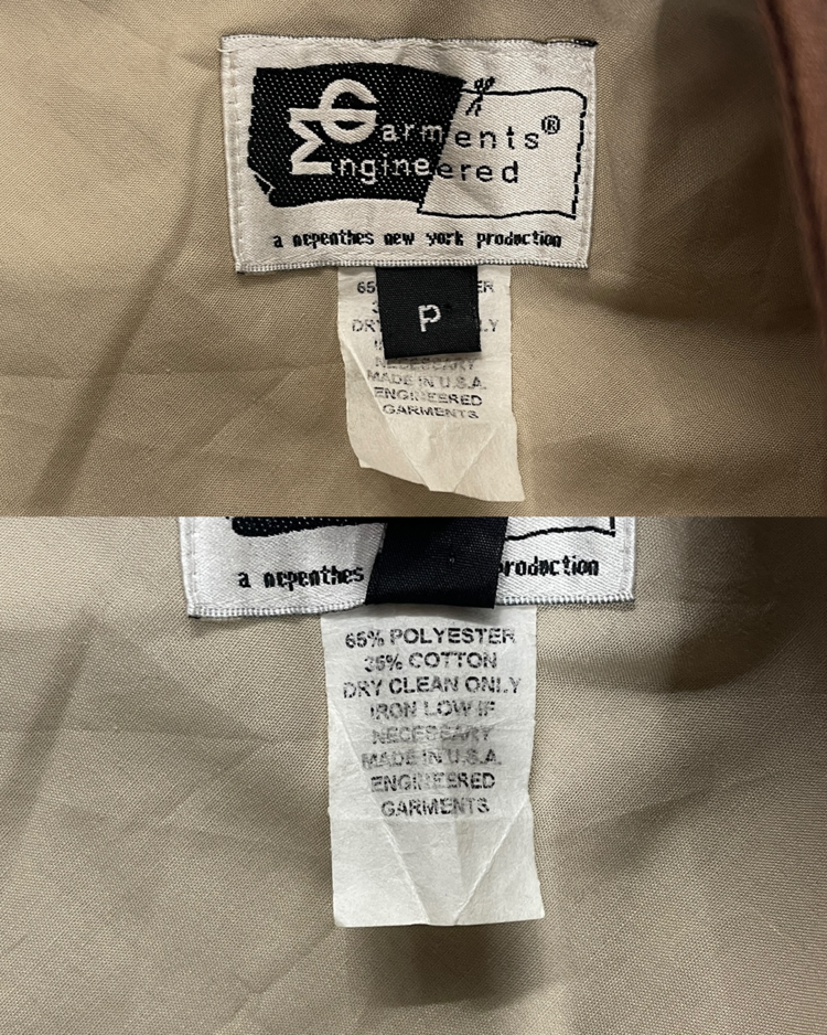 전통적인 테일러링과 워크웨어를 결합하여 전개하는 뉴욕 기반 브랜드 엔지니어드 가먼츠의 제품입니다. 사이드의 버클로 사이즈 조절이 가능하며, 후면부는 플리츠 디테일이 돋보입니다.