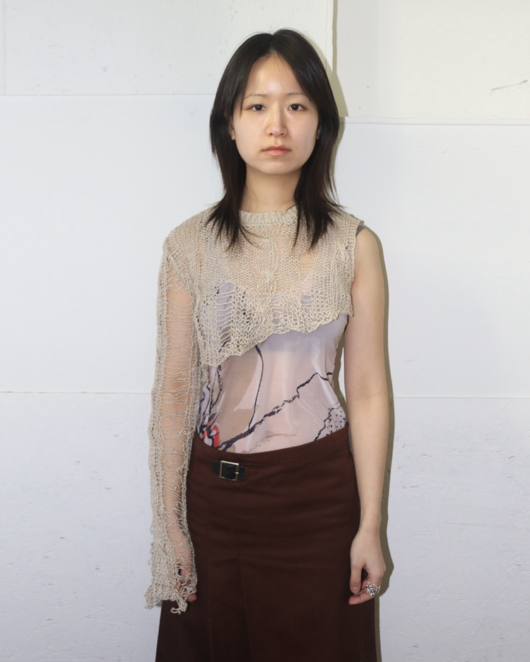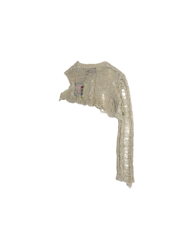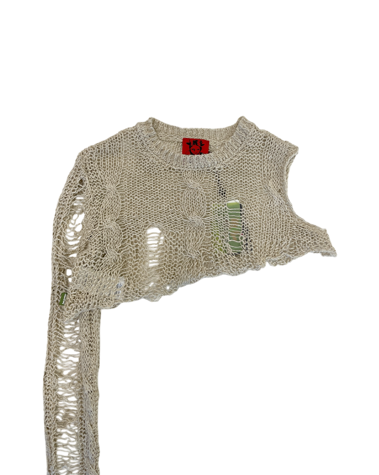 럭셔리와 뉴욕의 다운타운 스타일을 결합한 마크제이콥스의 서브 라인 헤븐의 제품입니다. 10대의 저항과 D.I.Y 정신을 강조하며 서브컬쳐를 재해석하며 다양한 문화적 요소를 뒤섞은 듯한 디자인이 특징입니다. 소매와 기장이 비대칭하게 연출되어 더욱 키치하고 Y2K감성과 도발적인 스타일을 잘 보여주는 제품입니다.