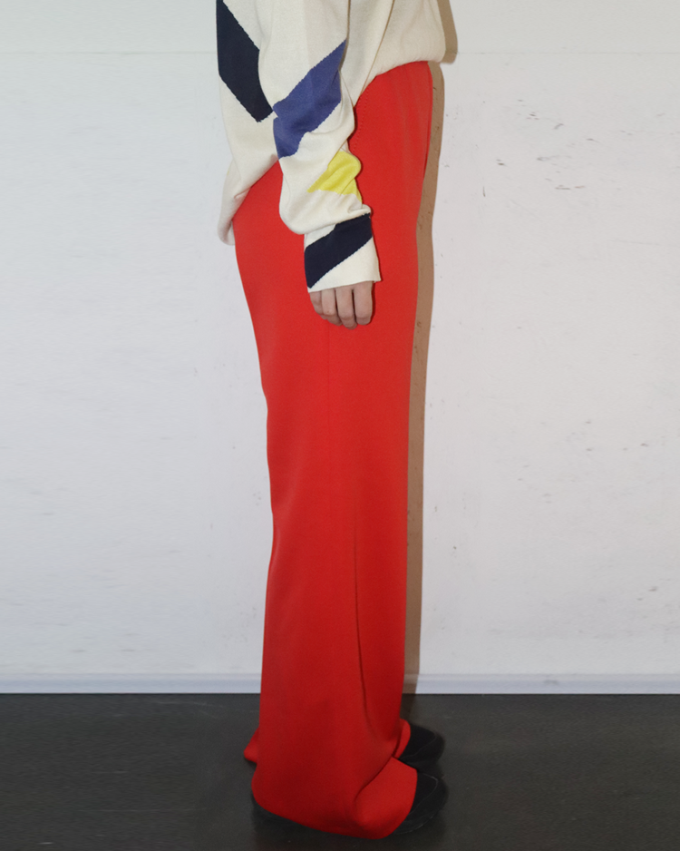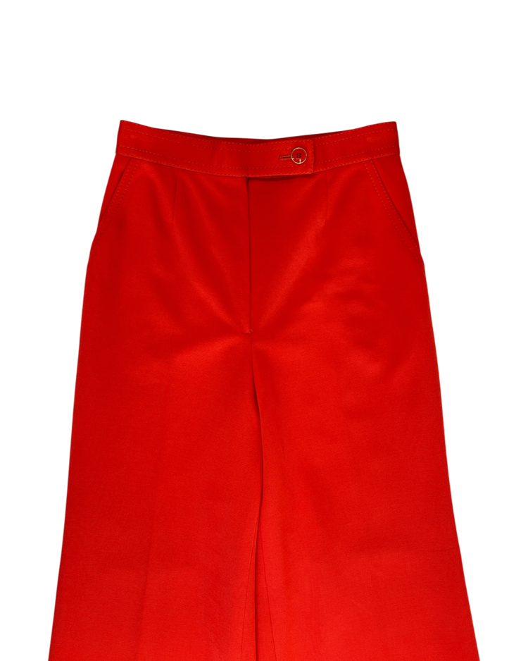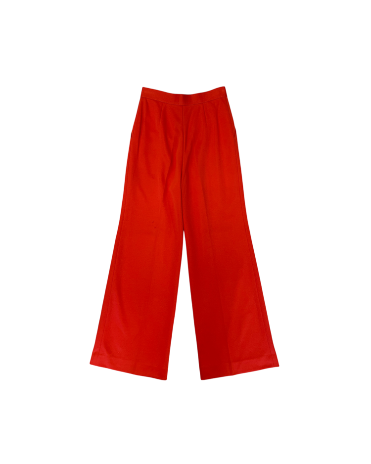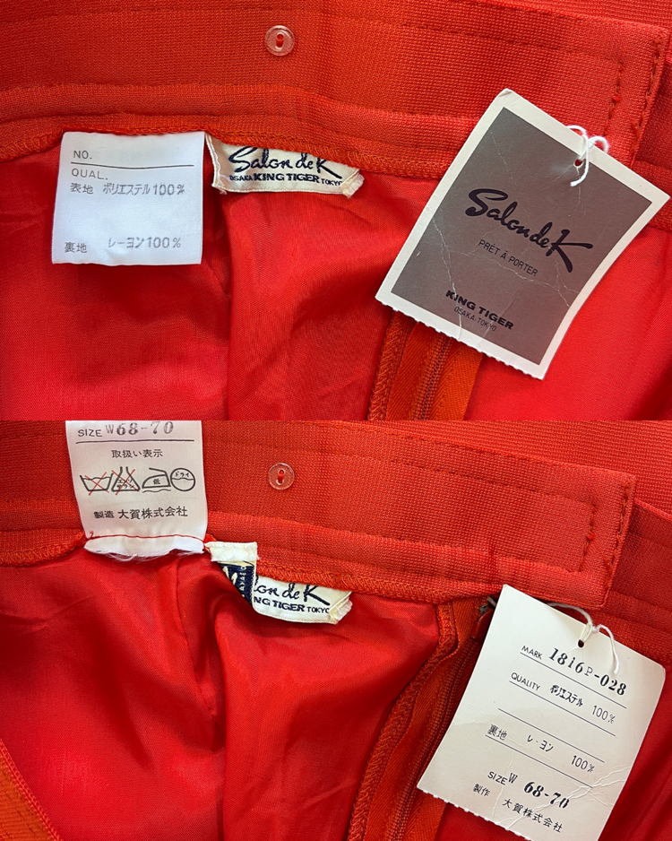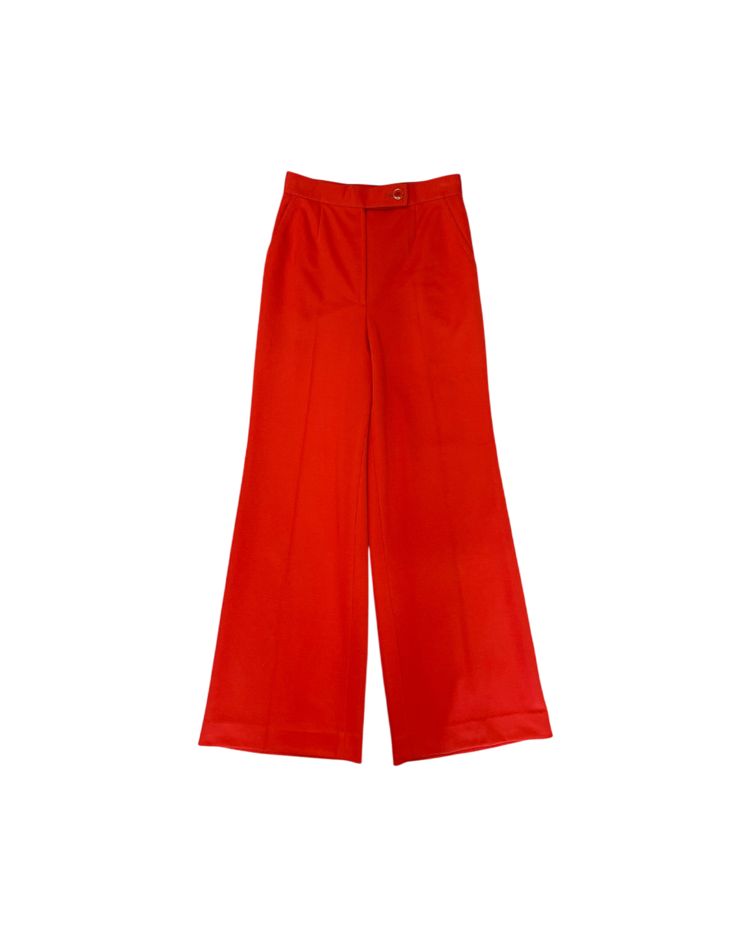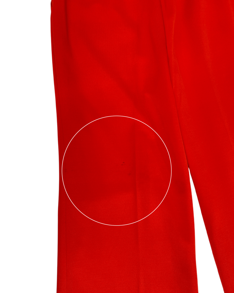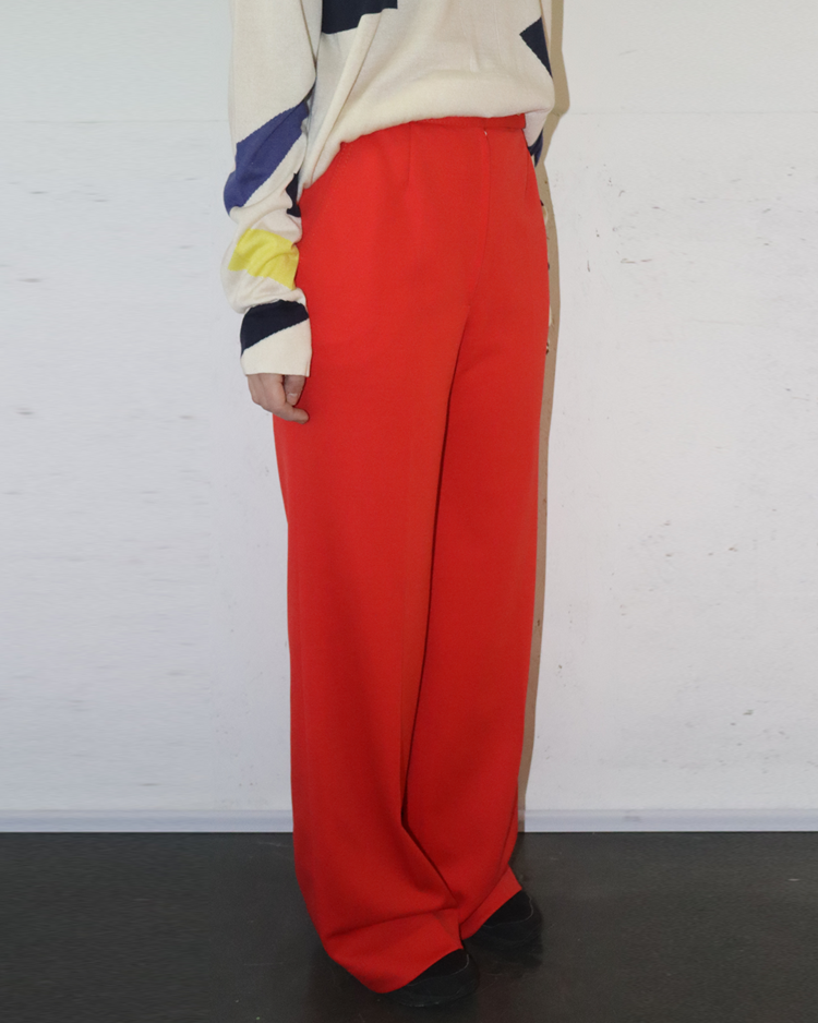 부츠컷 핏이 돋보이는 빈티지 팬츠입니다. 강렬한 색감과 와이드한 실루엣으로 자체적인 포인트가 되는 제품입니다. 후면부에 사용감 존재합니다.