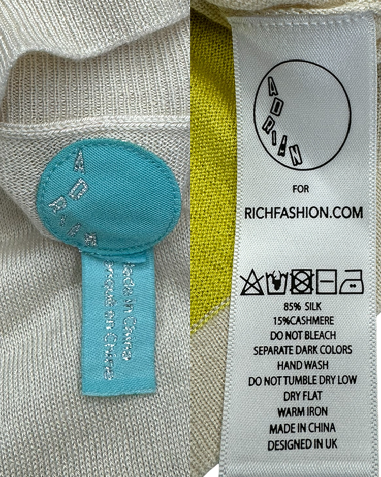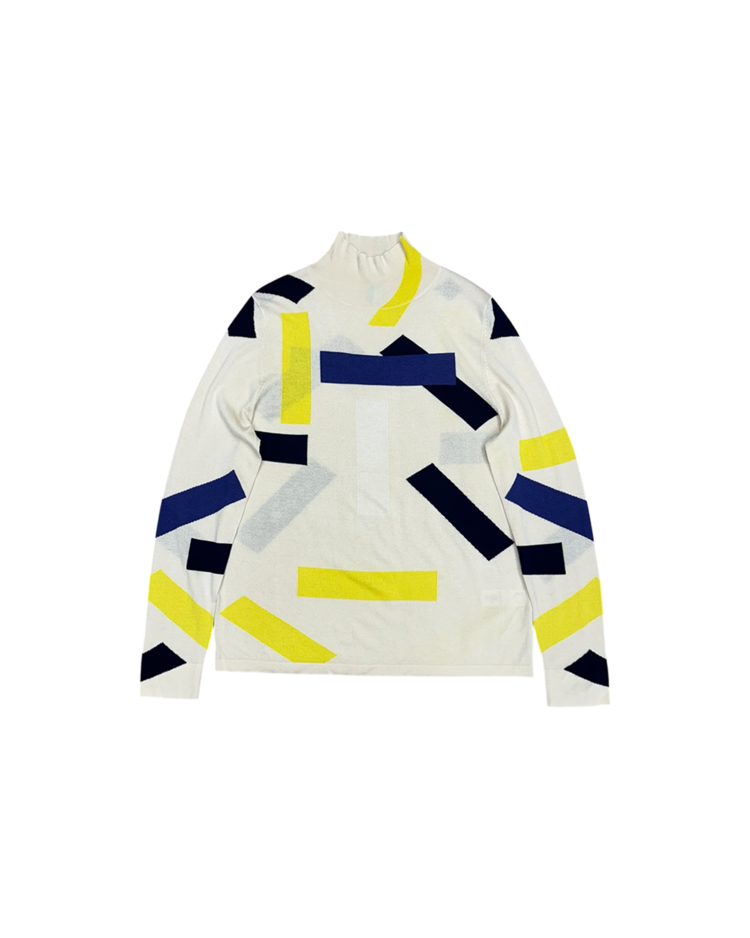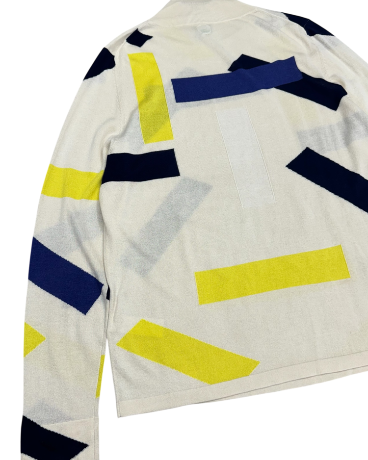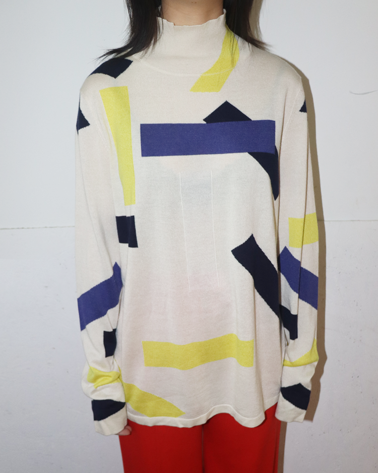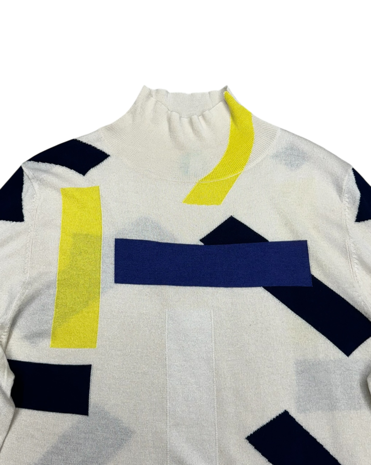 캐시미어와 파인 니트웨어를 기반으로 회화적 그래픽과 서사적인 프린트를 결합하는 브랜드 아드리안 캐시미어의 제품입니다. 캐시미어와 실크를 블렌딩해 가볍고 매끈한 촉감을 살렸습니다. 오프화이트 바디 위에 스트라이프 패턴을 불규칙하게 배치해 그래픽적인 인상을 주며, 앞·뒤로 이어지는 패턴이 입체적인 실루엣을 만듭니다.
