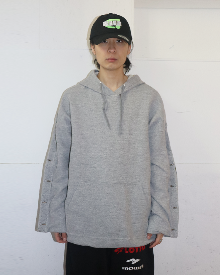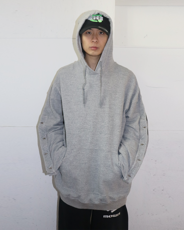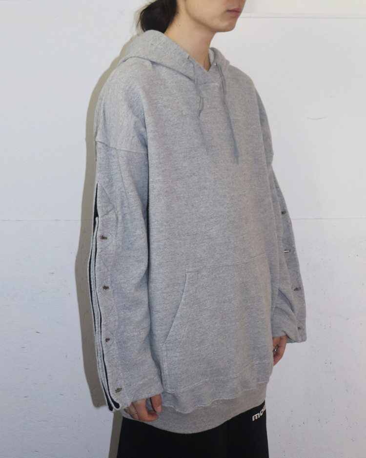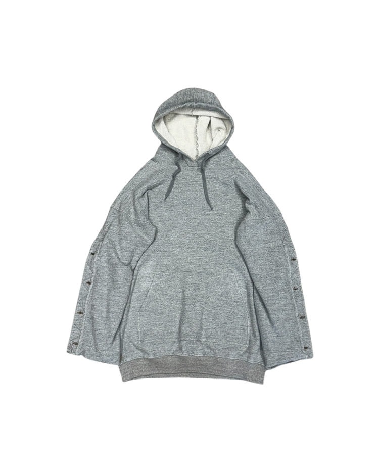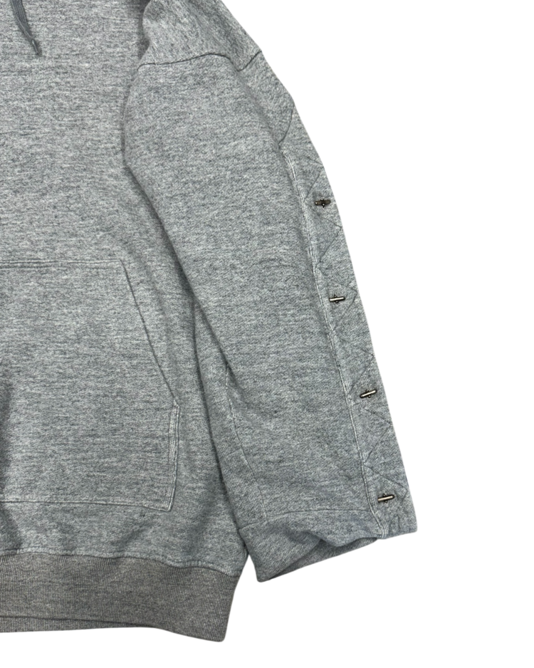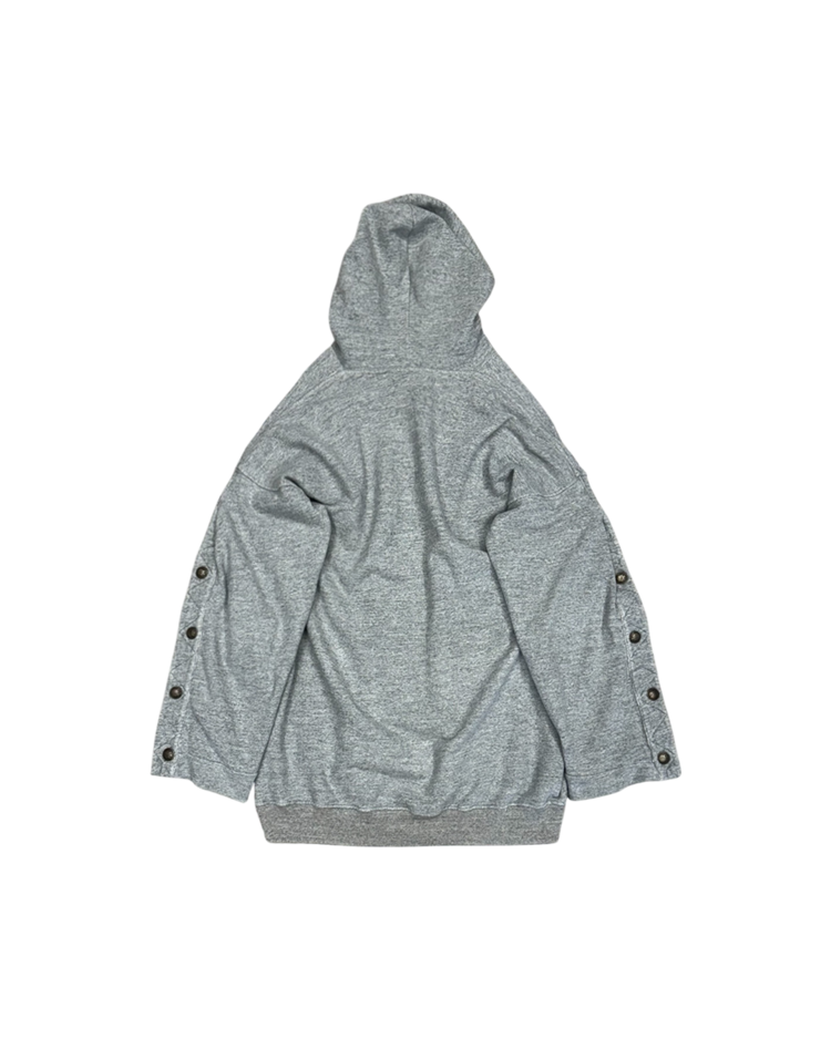 해체적 테일러링과 구조 변형을 통해 ‘한 벌이 여러 형태로 변하는 옷’을 제안하는 글렌 마틴스가 이끌었던 브랜드 와이 프로젝트의 제품입니다. 소매 라인에 버튼 디테일을 길게 배치해, 슬리브 실루엣을 강조한 디자인이 매력적입니다. 오버핏의 그레이 후드에 기능적 아이디어를 더해, 캐주얼한 아이템을 와이 프로젝트식 실험으로 재해석했습니다.