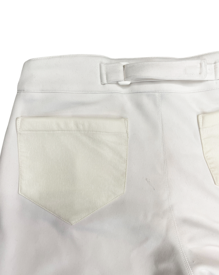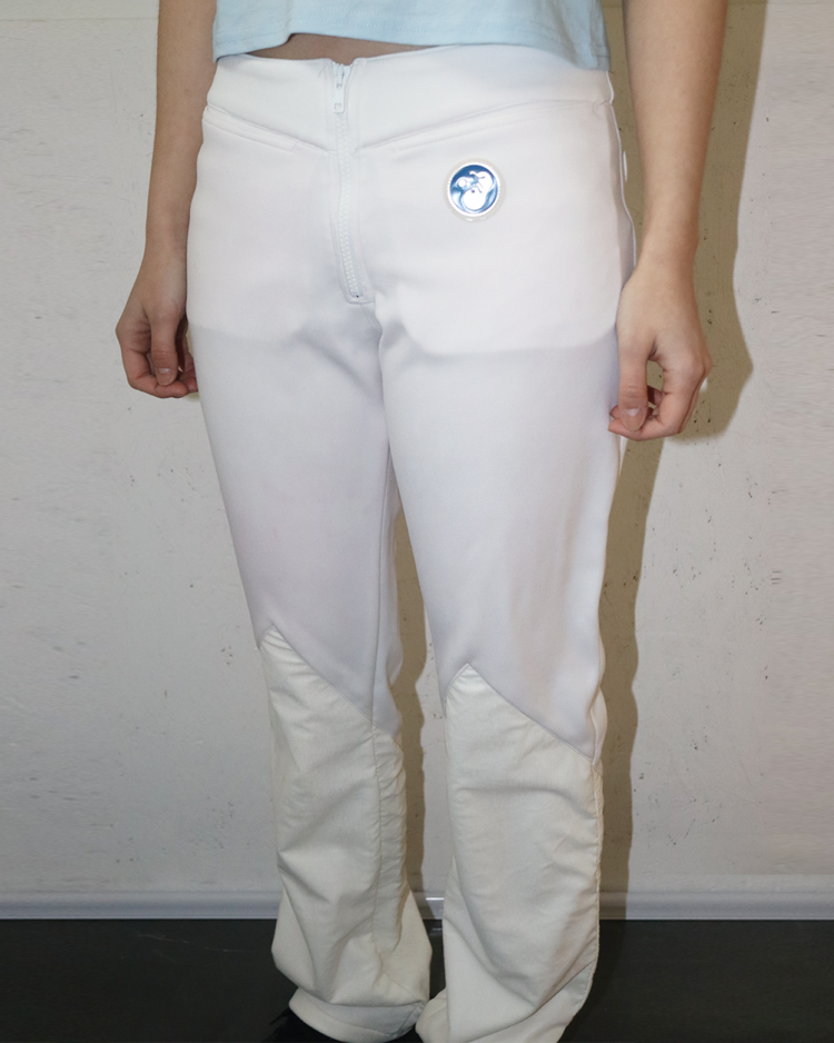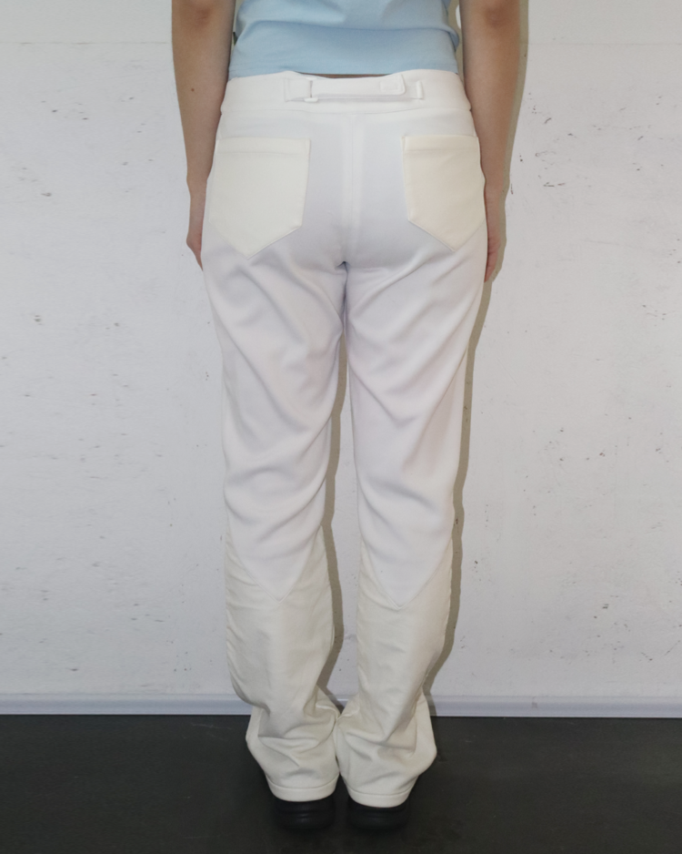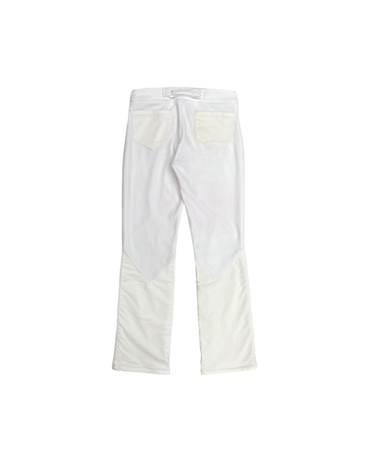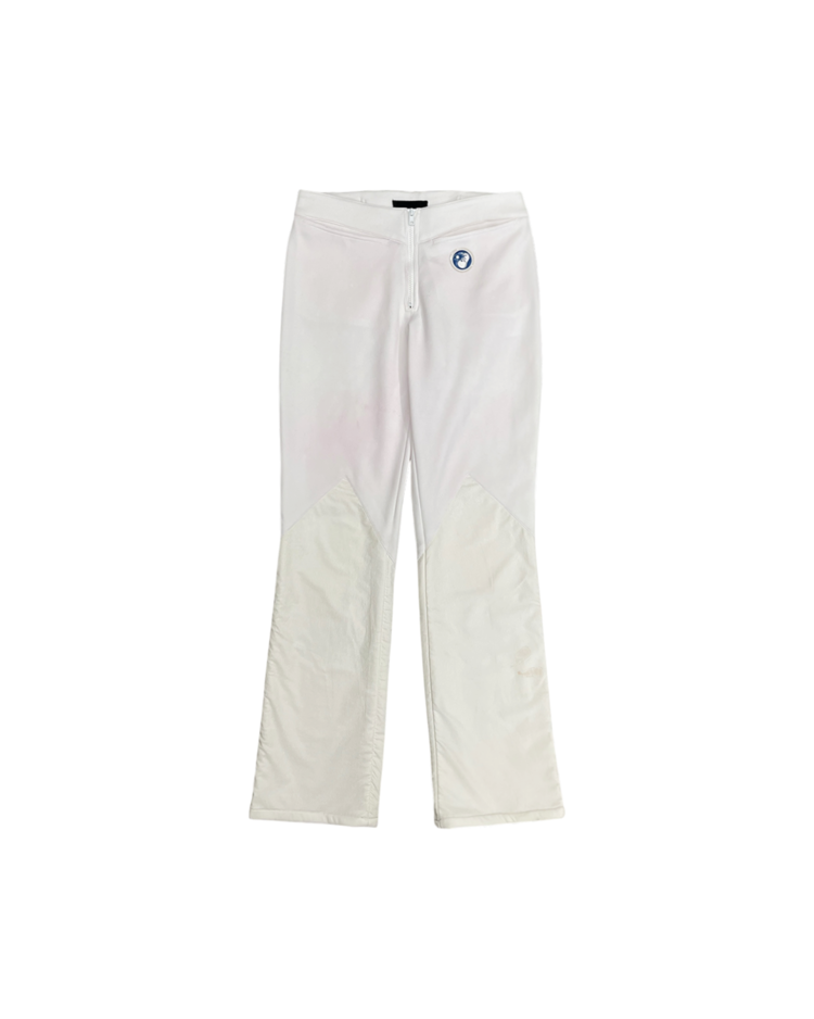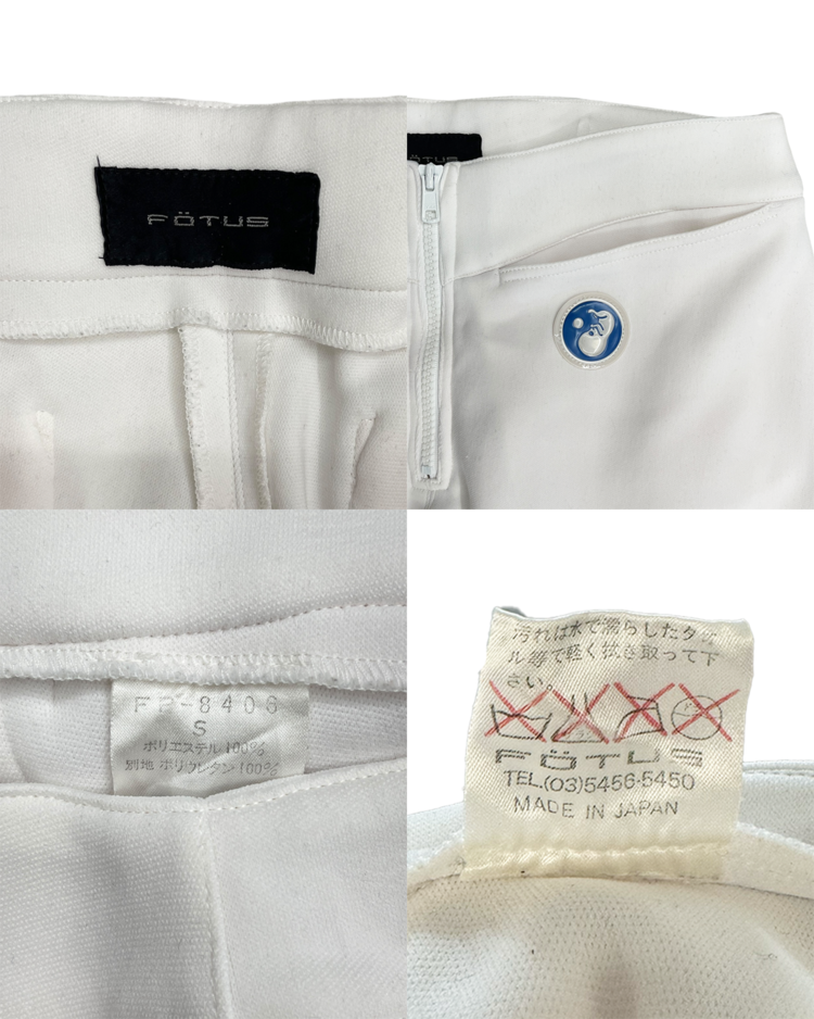 1990년대 후반~2000년대 초반 유기적인 실루엣과 사이버적 감성을 결합한 퓨처리즘 디자인을 선보이며 도쿄 언더그라운드 신에서 출발한 브랜드 포투스의 제품입니다. 노출 집업 클로저와 허리 벨크로 스트랩 디테일이 더해진 팬츠로, 패널 구조가 입체적인 실루엣을 연출합니다. 무릎 아래 배색 패널이 자연스럽게 이어지며, 기능성과 실험성을 동시에 드러내는 아이템입니다.