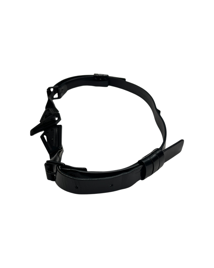니콜라 게스키에르가 디렉팅하여 미래지향적인 시즌의 발렌시아가의 제품입니다. 2009년 S/S 시즌 제품으로, 기하학적 메탈 버클이 중심에 배치되어 강렬한 조형미를 드러냅니다. 블랙 레더 스트랩과 강렬한 버클이 대비를 이루며, 하나의 오브제처럼 보이는 아이템입니다. 양 사이드 버클로 조절이 가능하며, 벌어짐과 같은 사용감이 존재합니다.