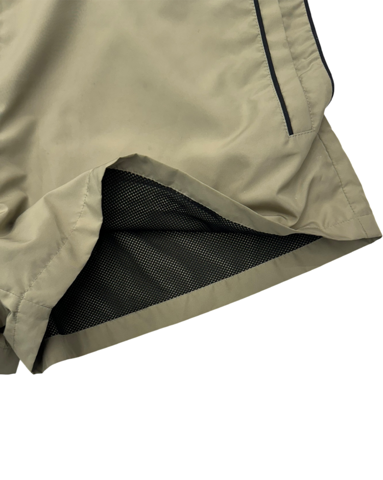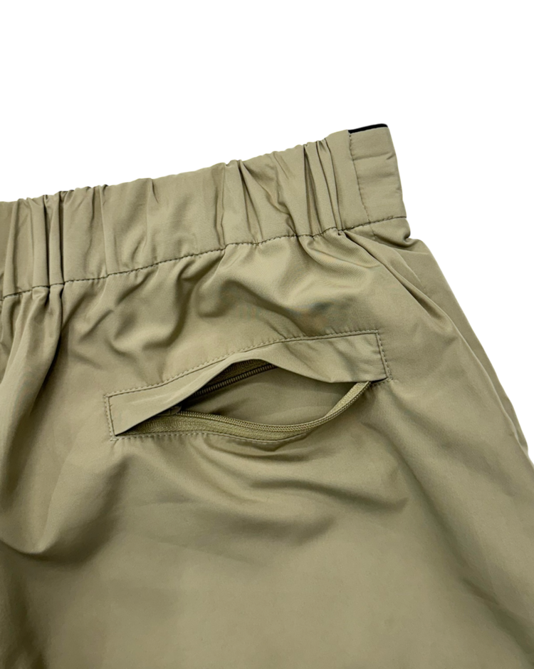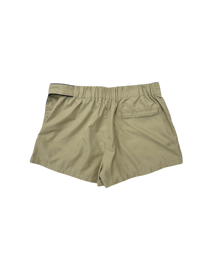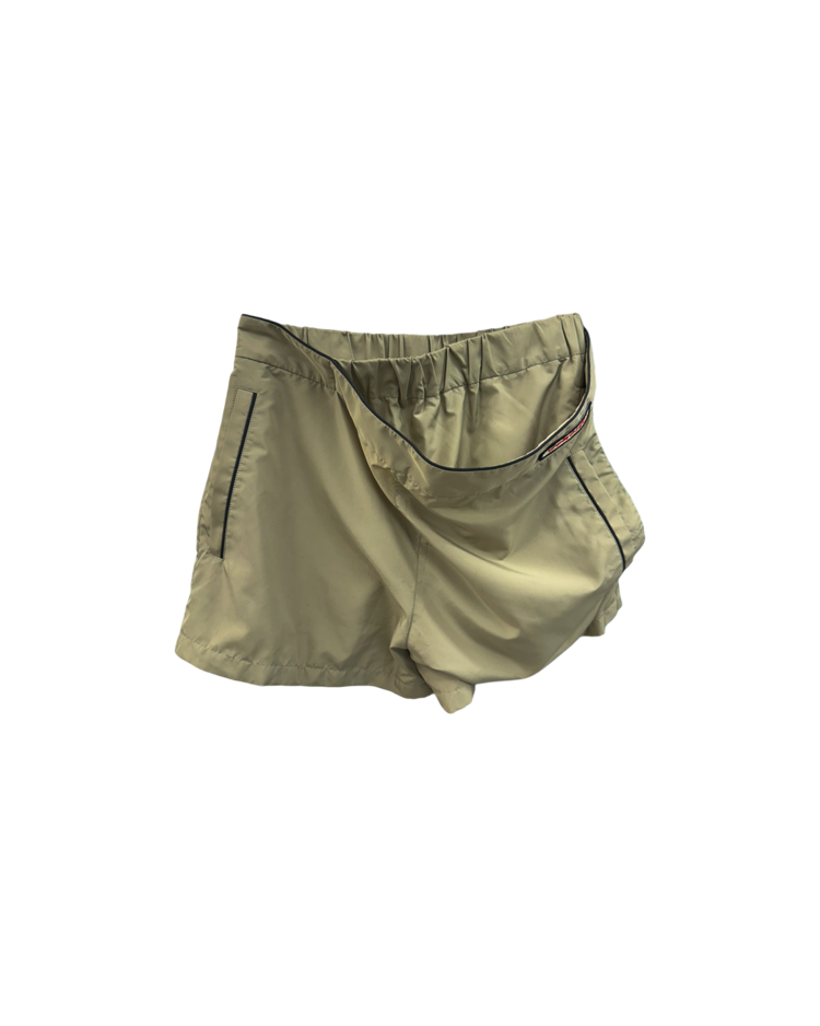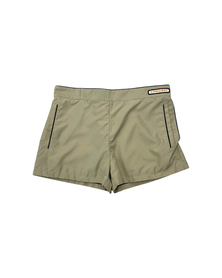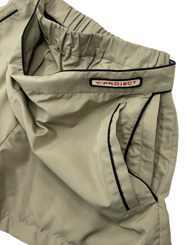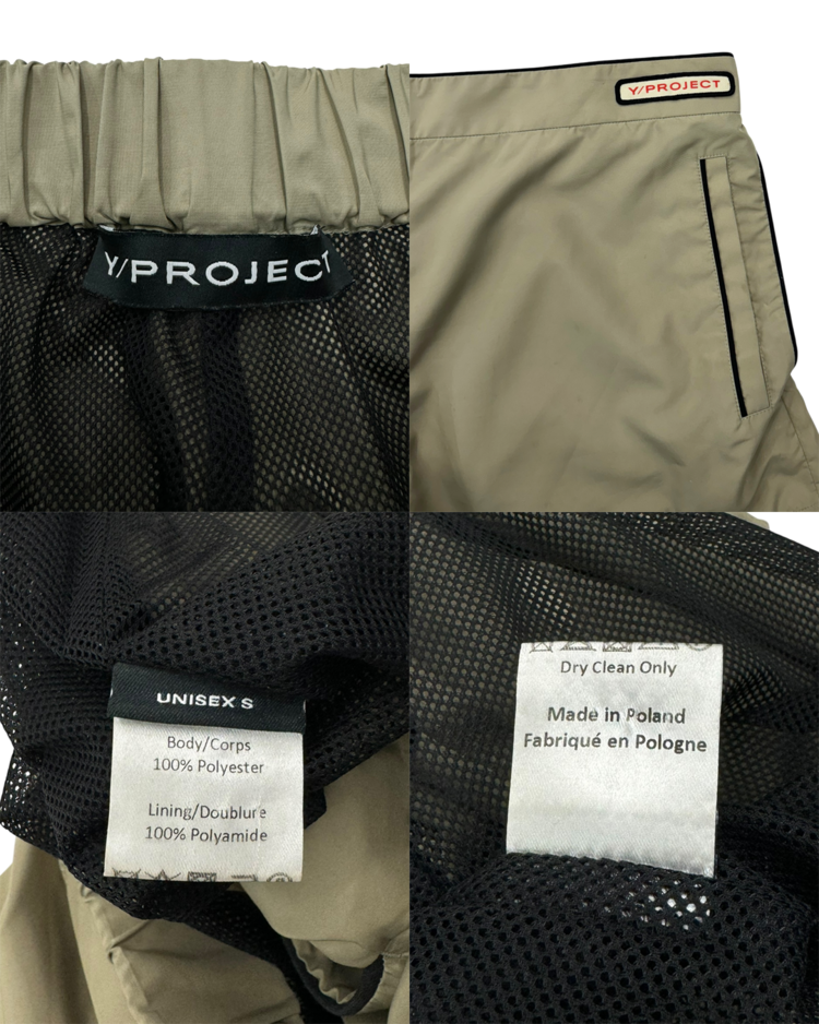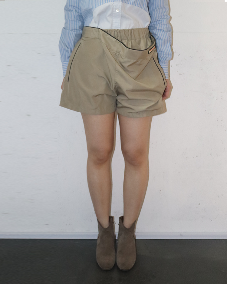 해체적 테일러링과 구조 변형을 통해 ‘한 벌이 여러 형태로 변하는 옷’을 제안하는 글렌 마틴스가 이끌었던 브랜드 와이 프로젝트의 제품입니다. 겉으로는 미니멀한 스포츠 쇼츠처럼 보이지만, 허리 라인을 한 번 접어 흘러내린 듯한 레이어 구조로 위트를 더한 피스입니다. 블랙 파이핑 디테일과 측면 지퍼 포켓, 메쉬 라이닝으로 기능성과 디자인을 동시에 잡았고, 가볍게 툭 걸쳐도 브랜드 특유의 구조적 감각이 살아나는 아이템입니다.