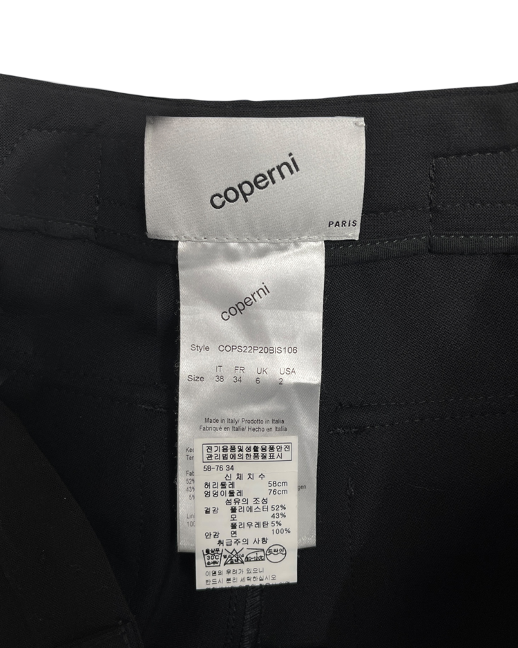 파리 기반의 듀오 브랜드로 디지털 시대의 감각, 테크놀로지적 미니멀리즘을 결합한 미래적인 실루엣을 제안하는 코페르니의 제품입니다. 입체적인 사이드 포켓과 밑단 지퍼 장식이 더해져 유틸리티 무드와 절제된 실루엣이 돋보이는 제품입니다.