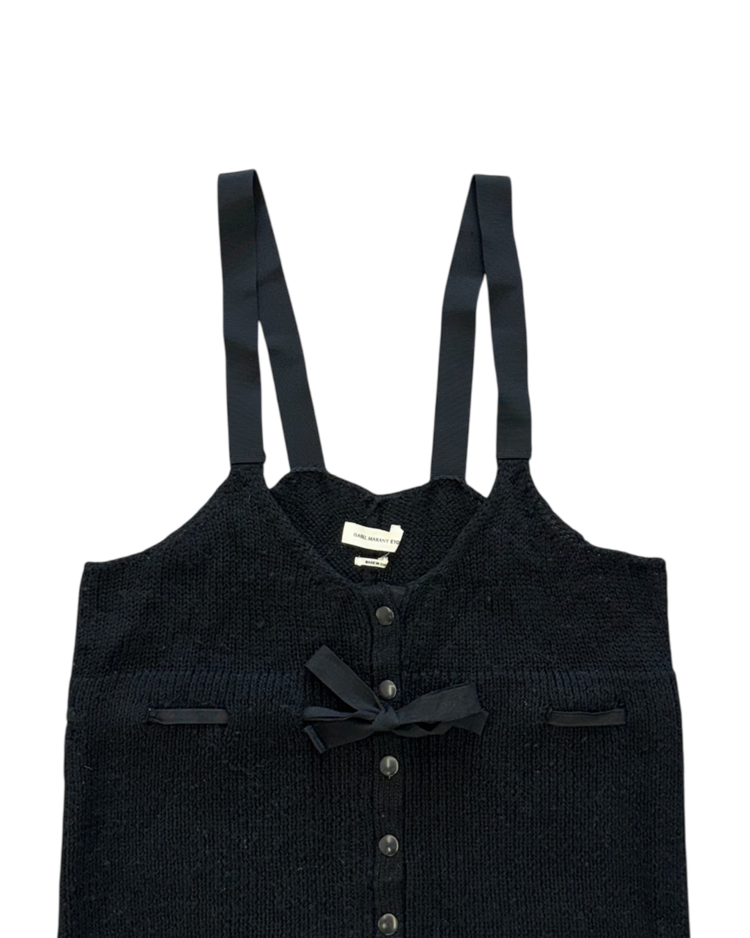 자연스러운 아름다움을 추구하는 프렌치 시크의 대표적인 브랜드 이자벨 마랑의 제품입니다. 내추럴하고 프렌치한 무드를 담은 니트 서스펜더입니다. 바디에 밀착되는 슬림 실루엣에 버튼 플래킷과 리본 디테일을 더해, 소녀적인 감성과 절제된 구조미가 공존하는 아이템입니다.