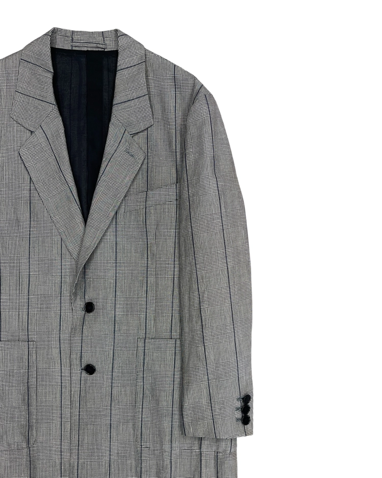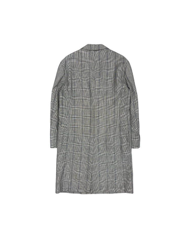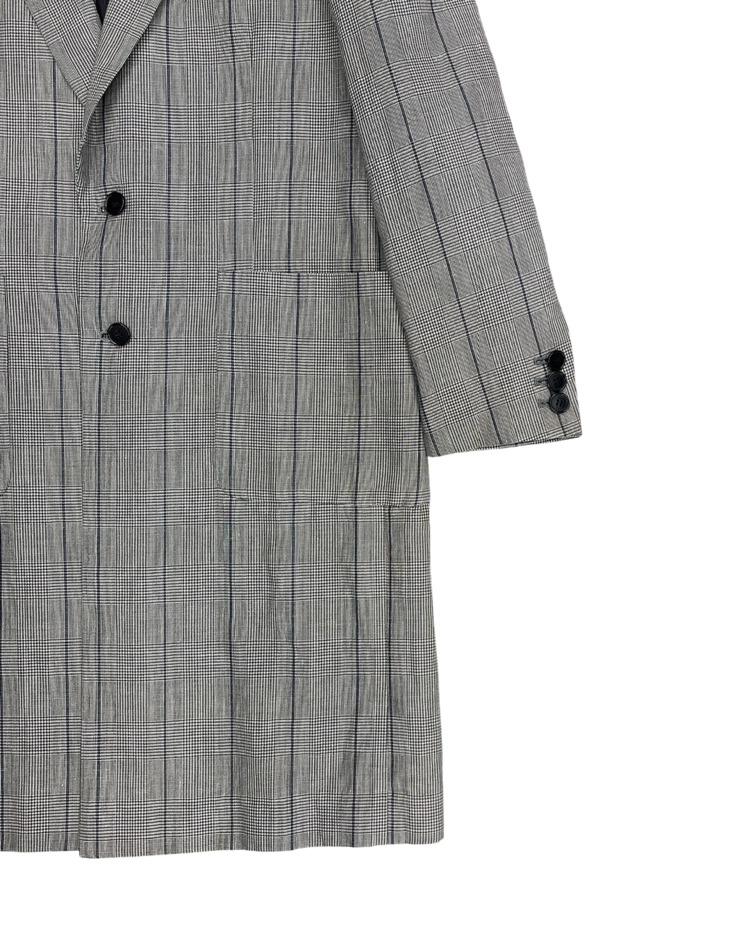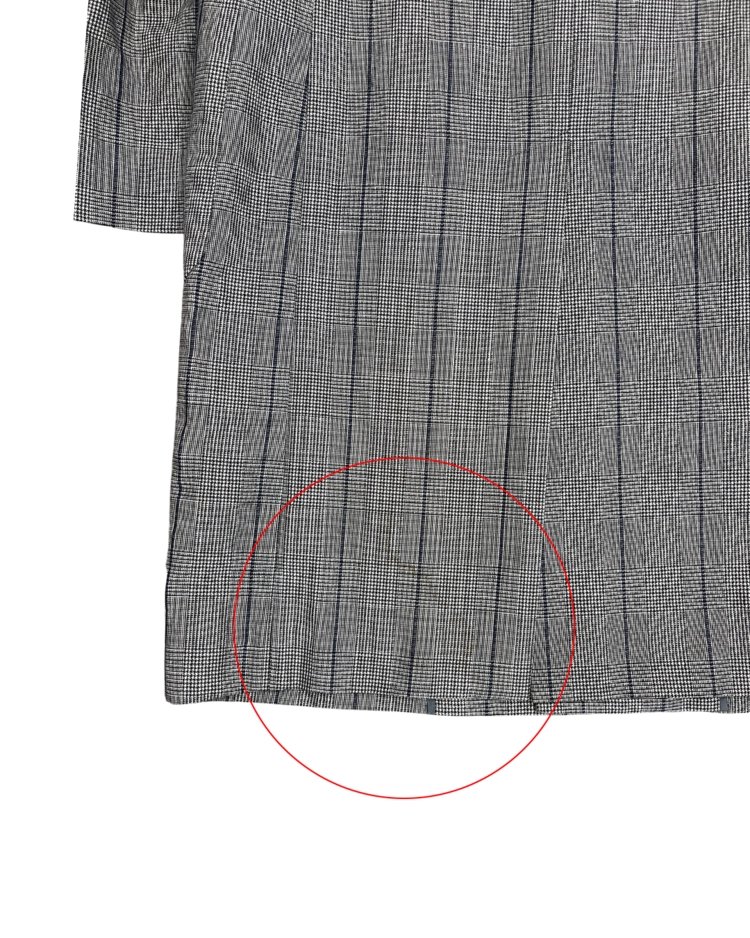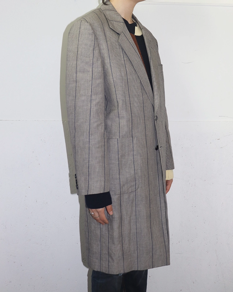록과 스트리트 감성을 바탕으로 슬림한 테일러링과 실험적인 디테일을 결합한 디자인으로 알려진 일본 브랜드 DIET BUTCHER SLIM SKIN의 제품입니다. 체크 패턴이 적용된 투 버튼 코트로, 날렵하게 떨어지는 실루엣과 미니멀한 구조가 특징입니다. 차분한 톤의 체크 패턴이 클래식한 분위기를 형성하면서도 슬림한 패턴 설계로 샤프한 무드를 강조했습니다.