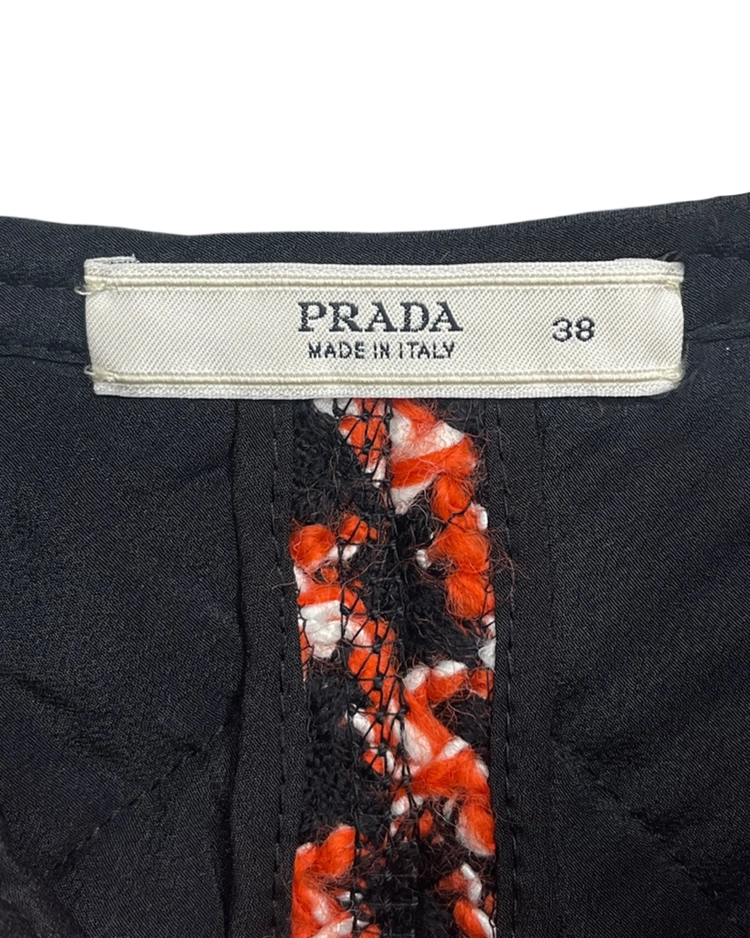혁신적인 디자인과 고급스러움을 결합하는 프라다의 아이템입니다. 울 소재로 보온성이 우수하며 질감이 매력적인 제품입니다. 밑단의 자연스러운 프린지 디테일이 특징입니다.