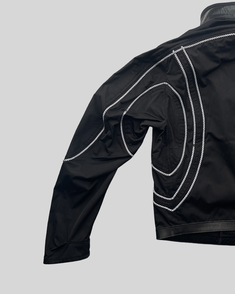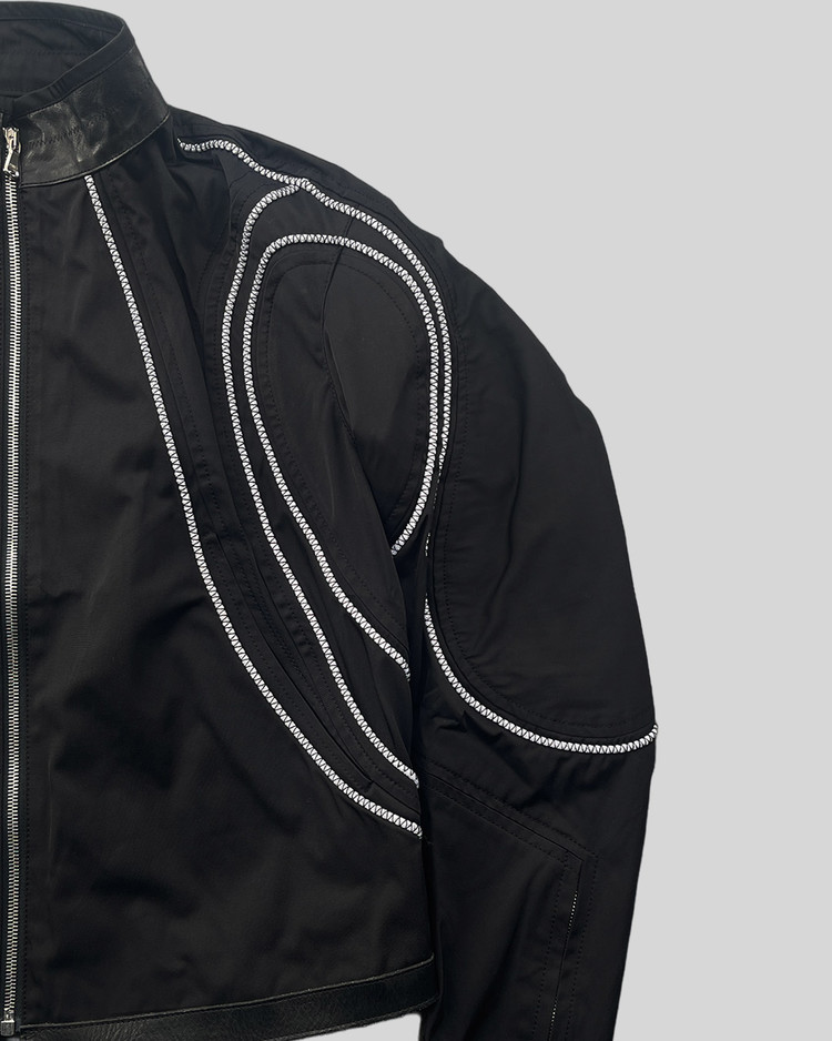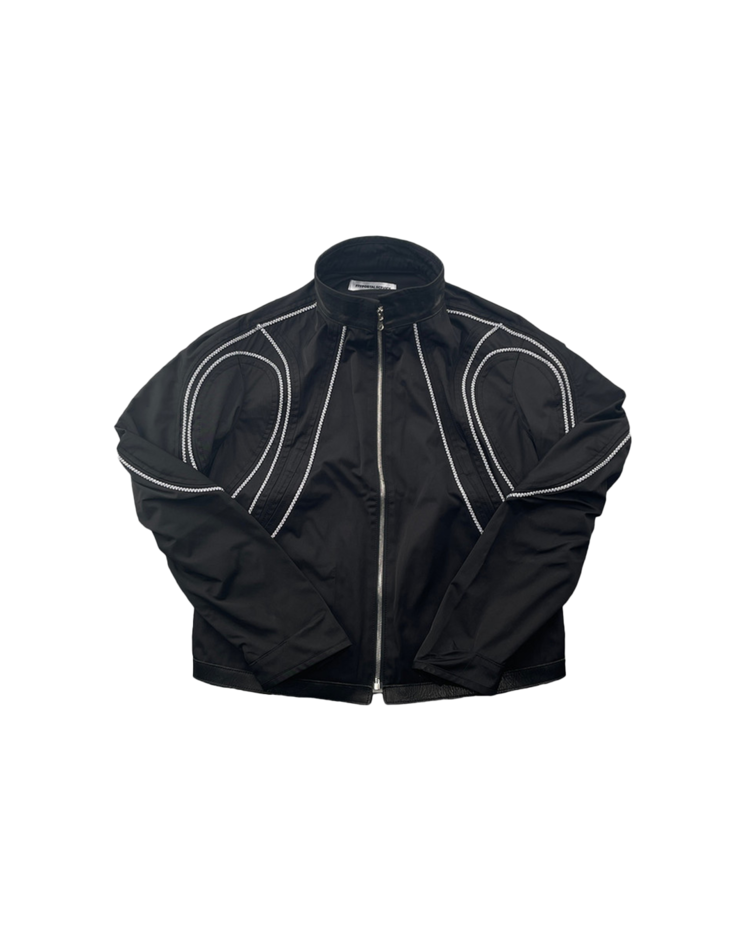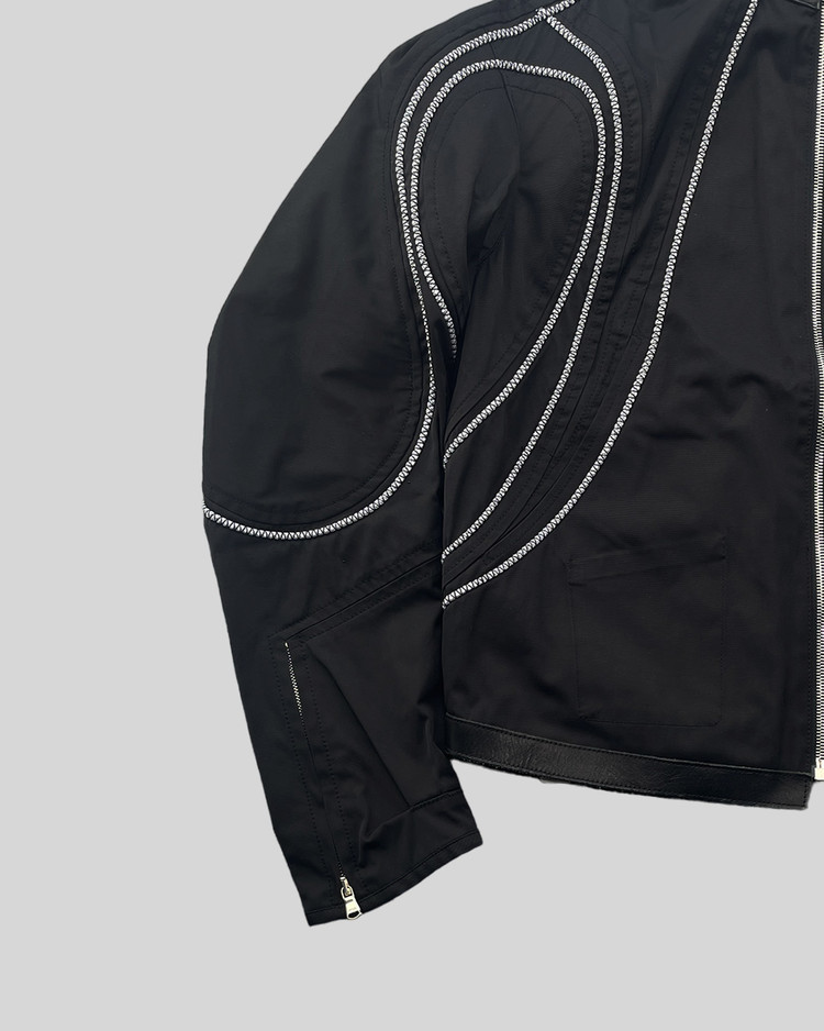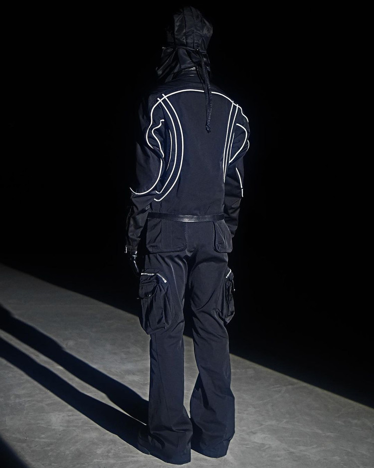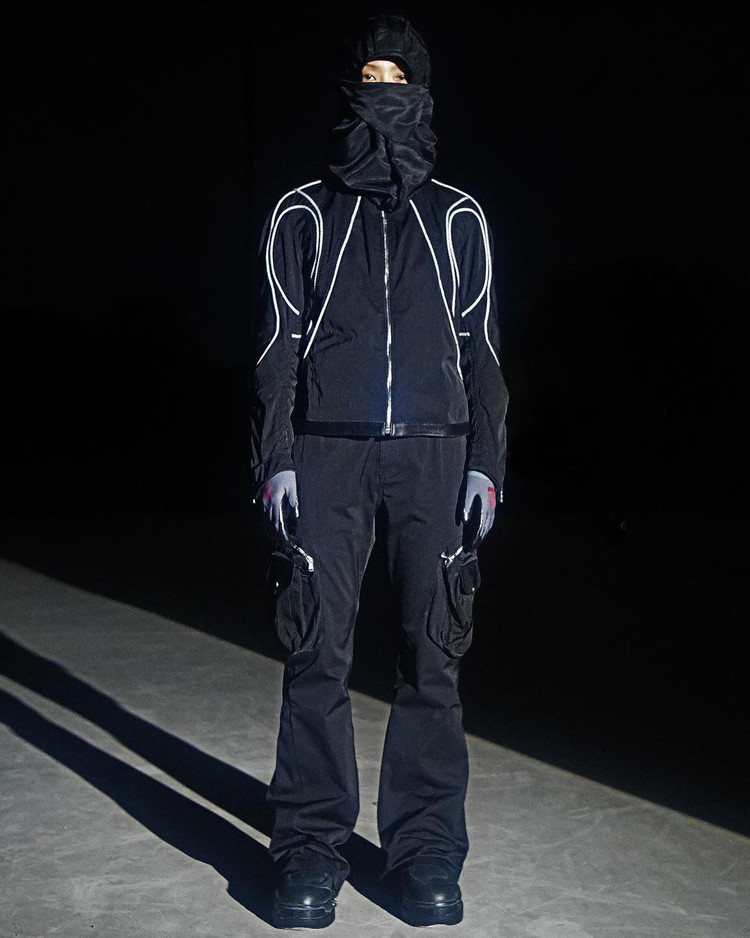 실험적인 해체와 재구성이 인상적인 서울 기반 브랜드 FFFPOSTALSERVICE의 헌터 자켓입니다.